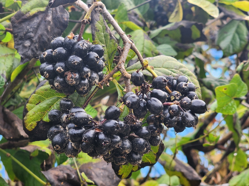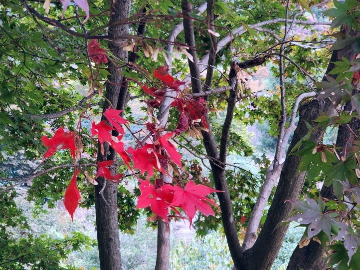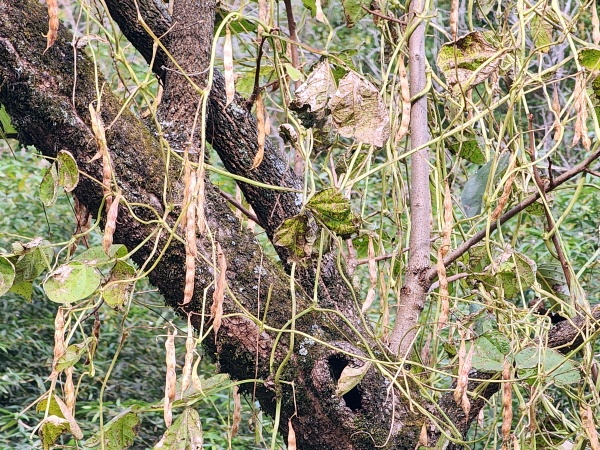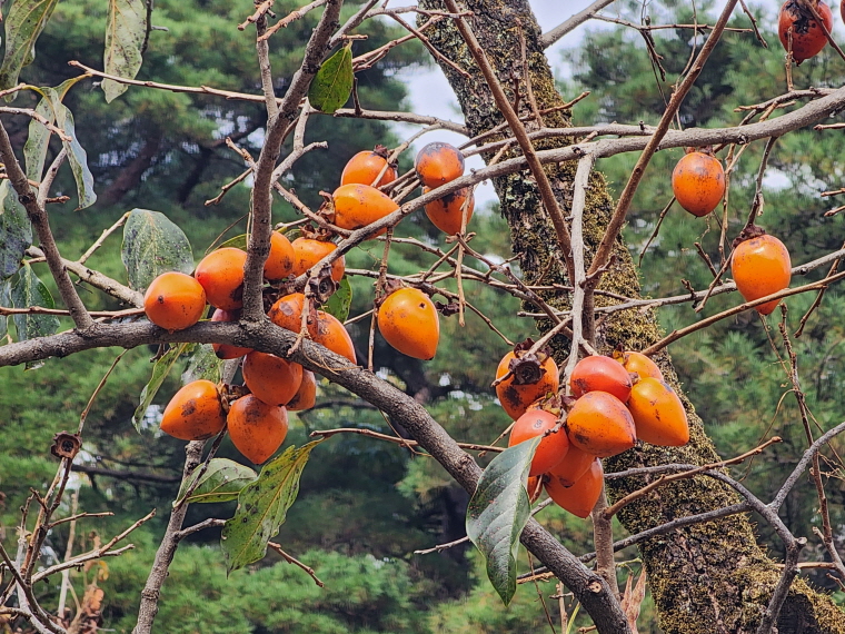 - 감나무를 타고 올라간 콩이 주렁주렁, 감나무의 감도 주렁주렁, 단풍과 함께 익어간다.