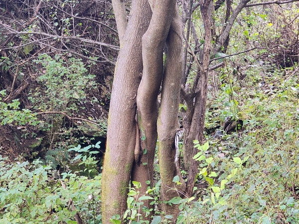 - 일행이 죽어 넘어진 대나무를 그냥 지나치지 못하고 한쪽으로 치운다, ^^ / 죽은 나무에서 난 새순, 무슨 나무인지 알 수가 없는 특이한 잎을 가졌다. / 서어나무 기둥은 언제 보아도 아름답다.