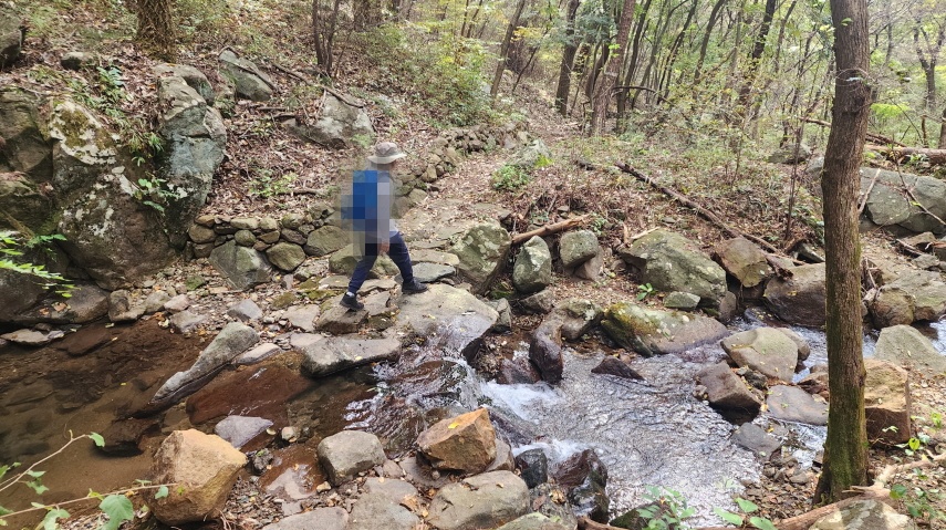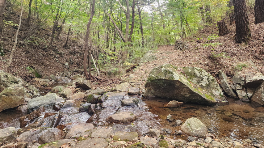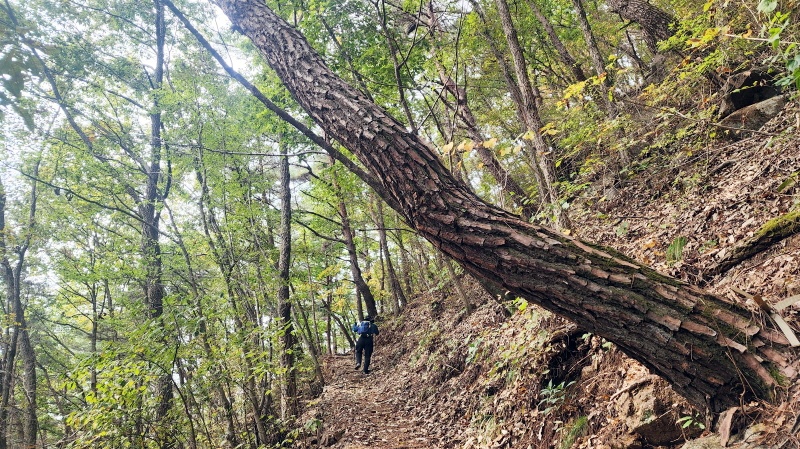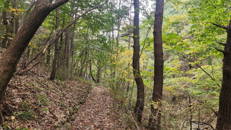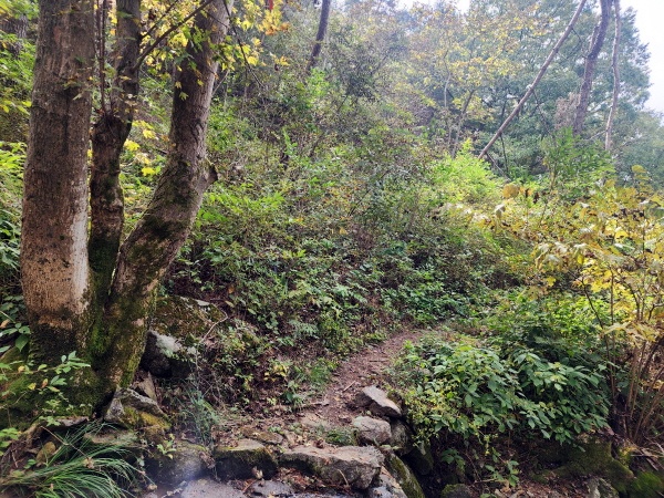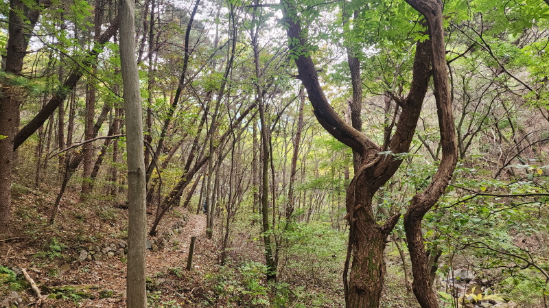 - 둘레길 다운 길들. 산 허리를 빙 둘러 돌아 오른다. 작은 계곡도 지나고,