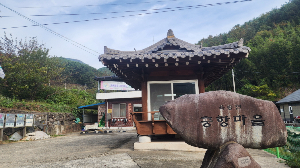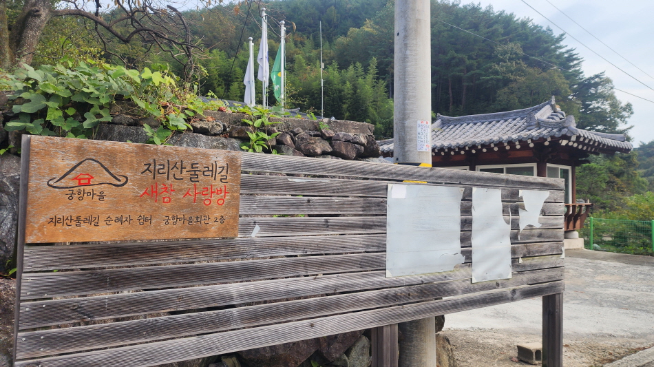 - 궁항마을 마을회관은 지리산둘레길 순례자들의 새참쉼터로 제공되어 있다. 새참을 먹고 3000원을 통에 넣게 되어 있는데, 새참통을 열어보니 아무 것도 없다. 아마도 전에는 운영을 했는데, 이용하는 사람이 없어 빈 것으로 남아 있는 모양이다. 지리산 둘레길을 돌며 '새참쉼터'는 처음 보아서 아주 반가웠다.