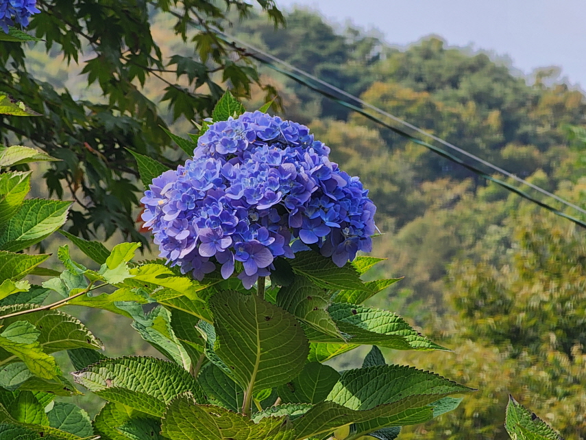 - 궁항마을 산위 어떤 집의 마당가에 핀 수국이 철이 지났는데도 생생하다. 이곳의 기온이 낮은가?... 높은가?...