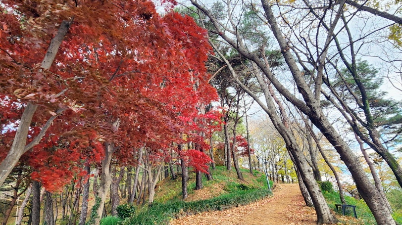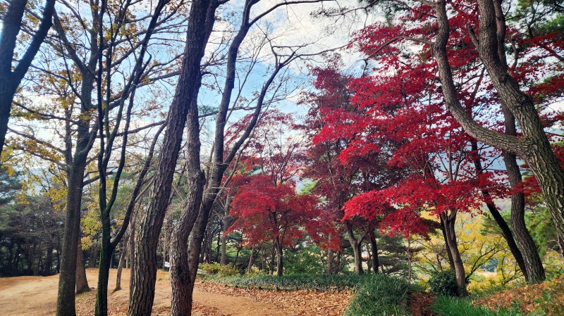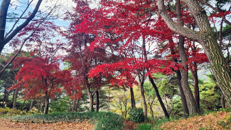 - 빨간 단풍이 정말 빨갛다. 바람에 흔들이는 단풍