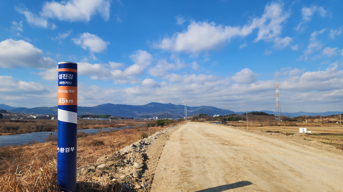- 섬진강 둑길 공사가 이제는 끝나지 않았을까 싶었는데, 여전히 미완인 채로 있었다.