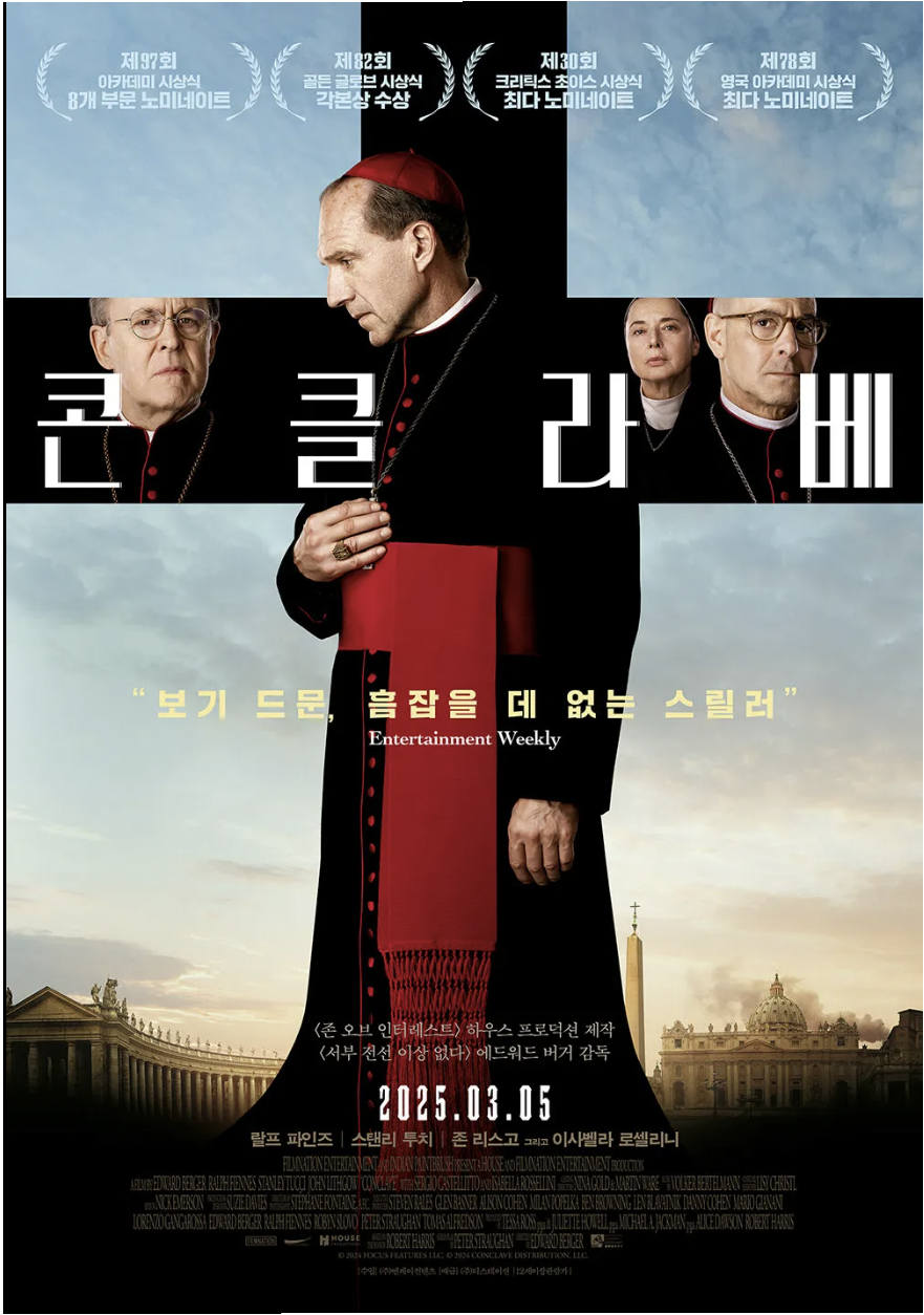 교황의 예기치 못한 죽음 이후 새로운 교황을 선출하는 ‘콘클라베’가 시작되고, 로렌스(랄프 파인즈)는 단장으로서 선거를 총괄하게 된다. 한편 당선에 유력했던 후보들이 스캔들에 휘말리면서 교활한 음모와 탐욕이 수면 위로 드러나는데…