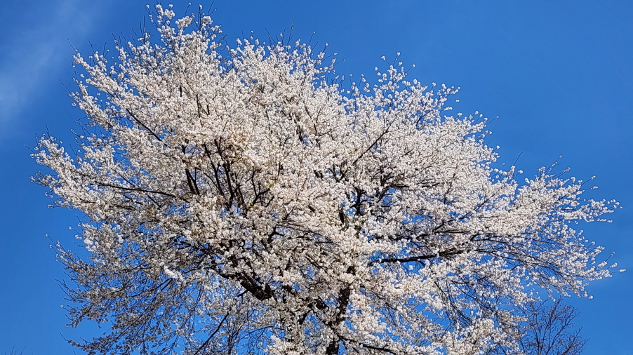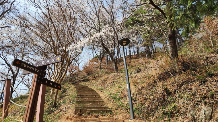 - 봉성산에 벚꽃이 활짝 피어 산이 하얗게 물들었다.