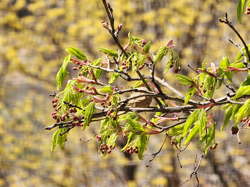 개나리를 분재처럼 가지 치기 하며 오랜 세월 키우면 이렇게 된다고 하니, 한 번 도전해 봄직도 하다.