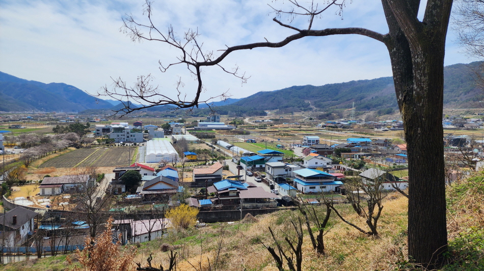 - 둘레길에서 내려다보니 자연과학고와 멀리 오산이 보인다. (오른쪽) 봉서리 마을