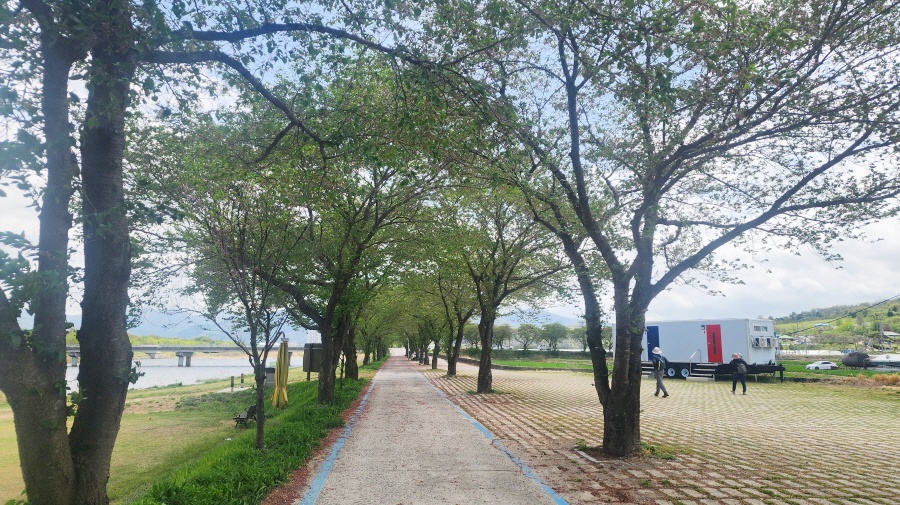 - 구례 2020년물난리로 인해, 섬진강둑을 다시 보수하였기 때문에 나무가 없고, 땡볕이 되었다. 섬진강을 따라 걷기.