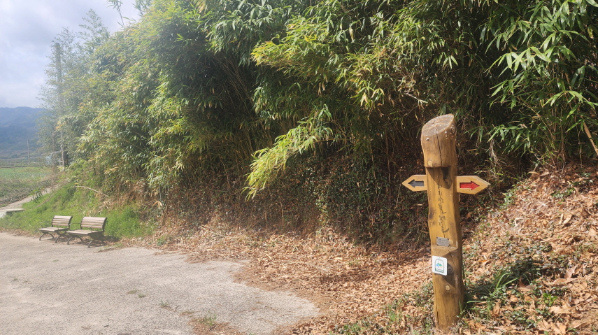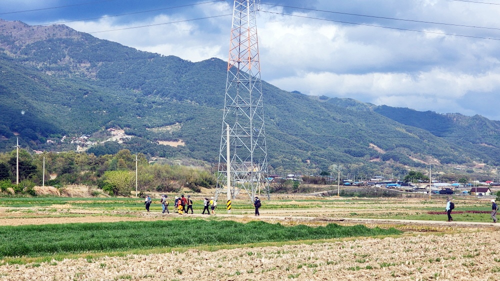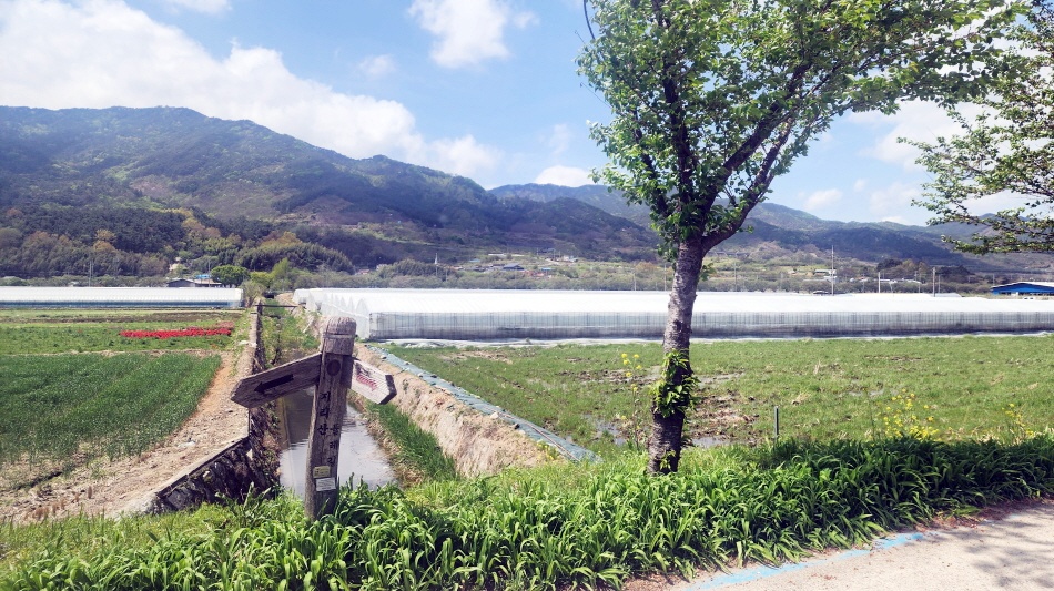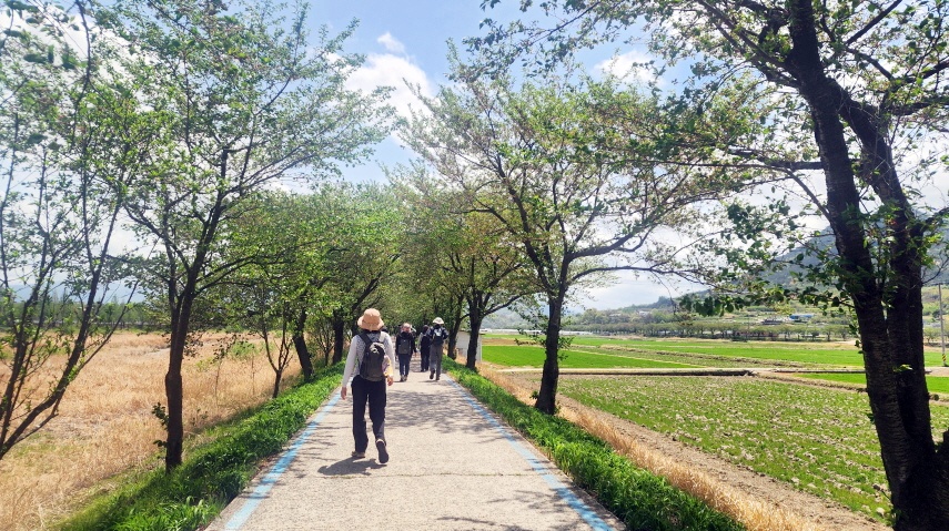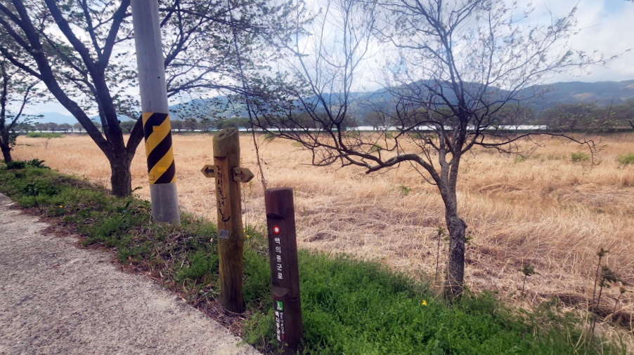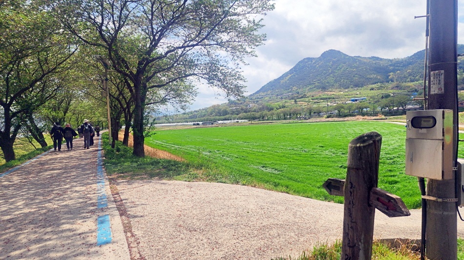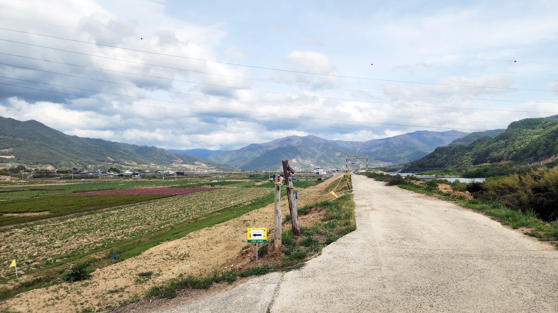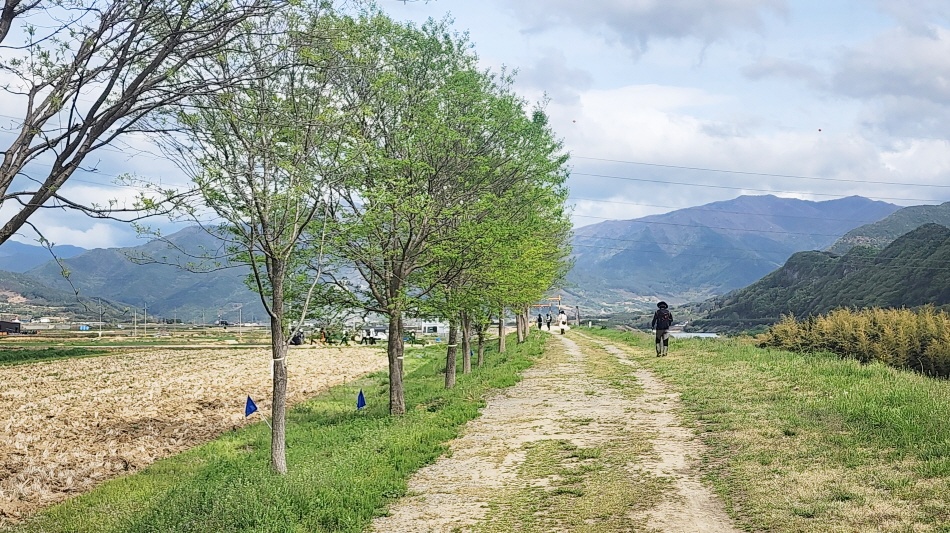 - 섬진강 둑방길에서 내려와 공사중인 구간에서는 논밭사잇길로 걷는다.
