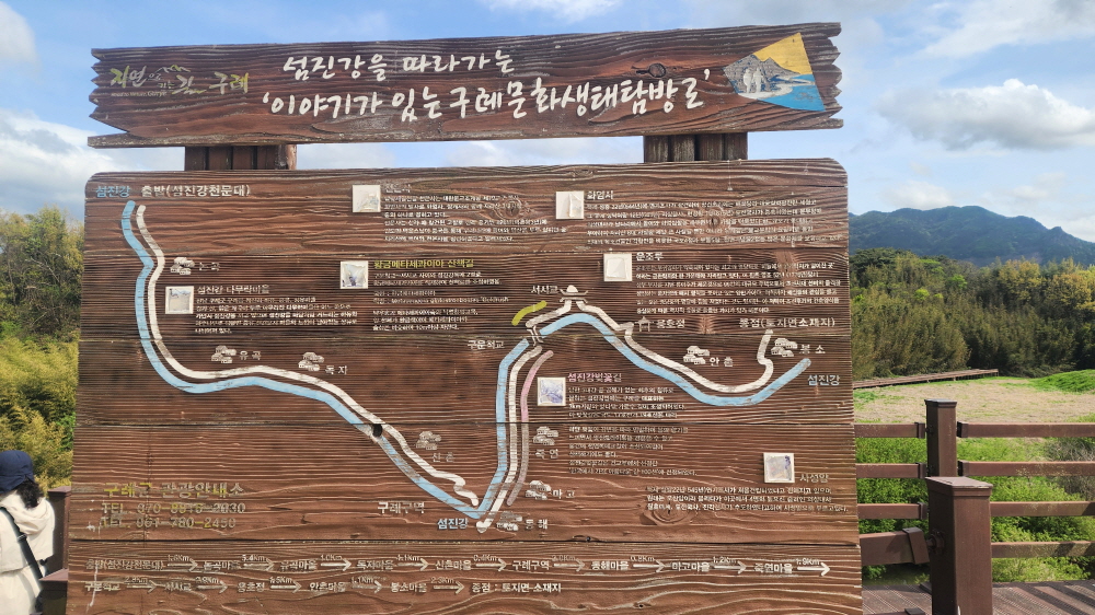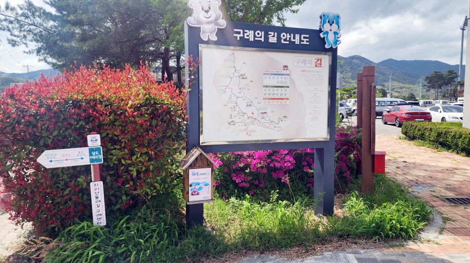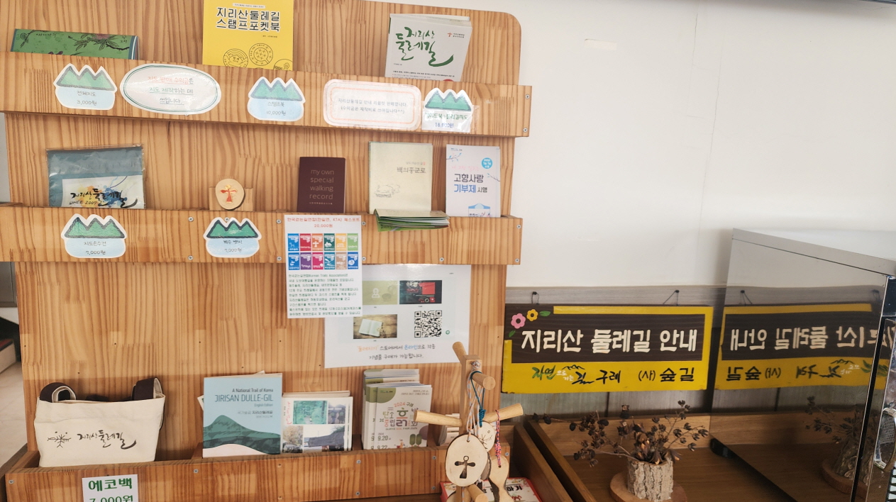 - 인근 식당에서 점심을 먹고, 지리산둘레길 구례센타에서 휴식을 취한다. (가져온 도시락을 먹고 생수와 커피를 마실 수 있다. 지리산둘레길 스탬프 책자와 지리산둘레길 벅수 모양의 기념품도 구할 수 있다.)