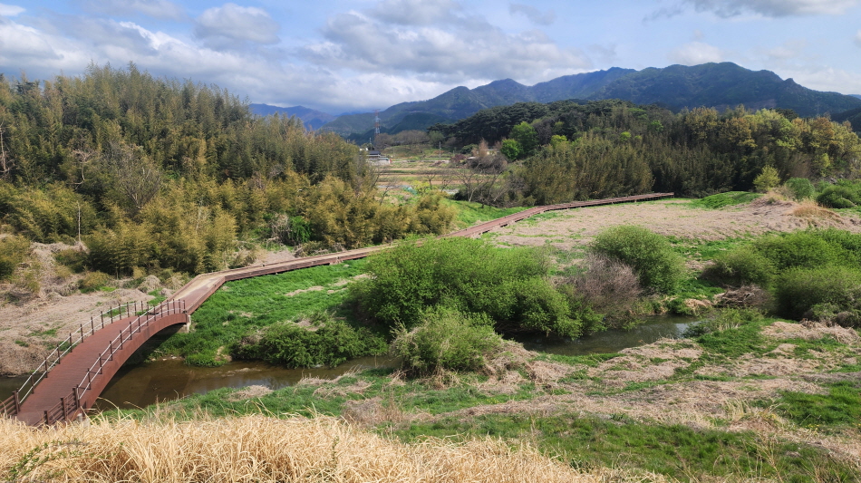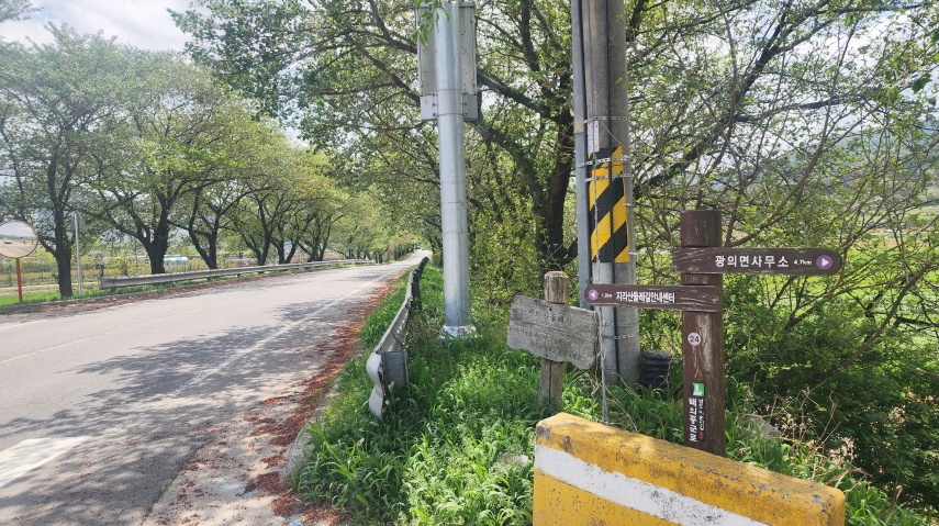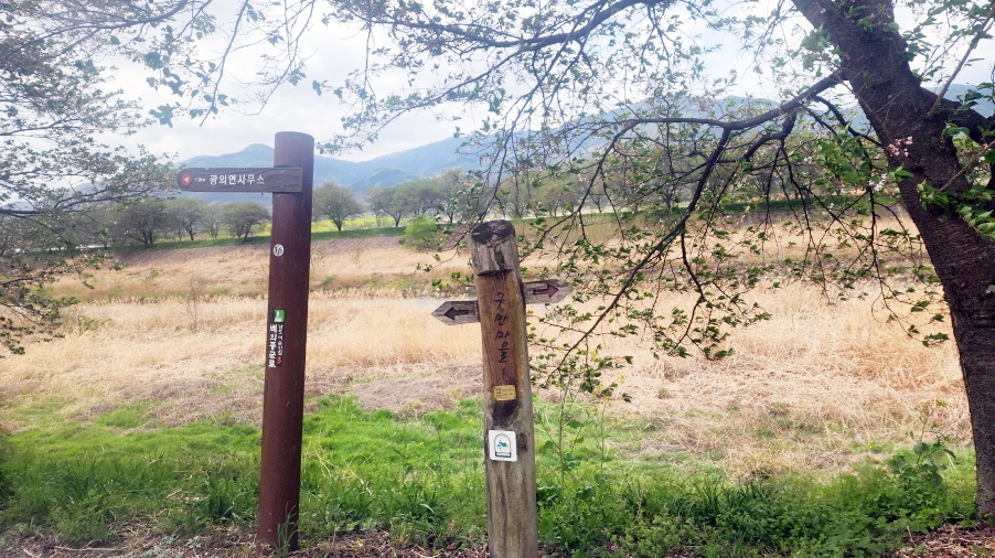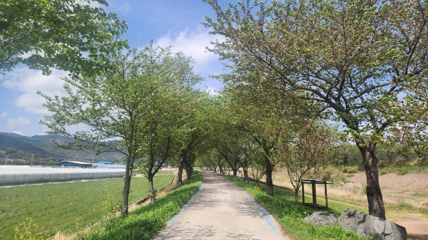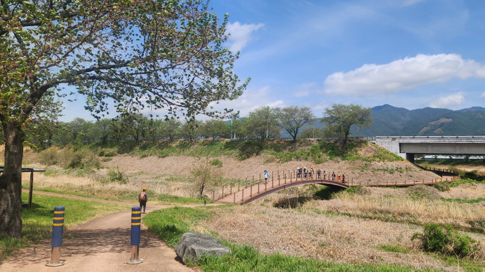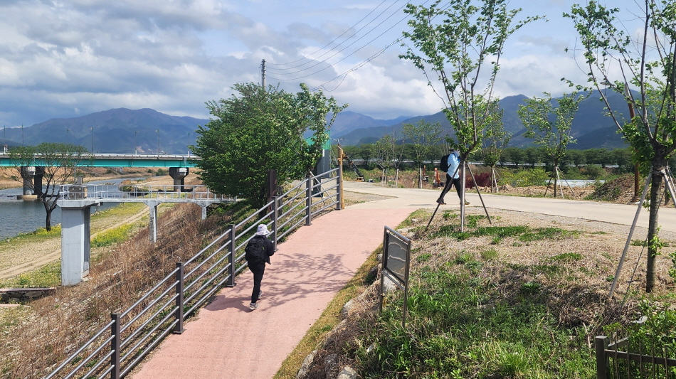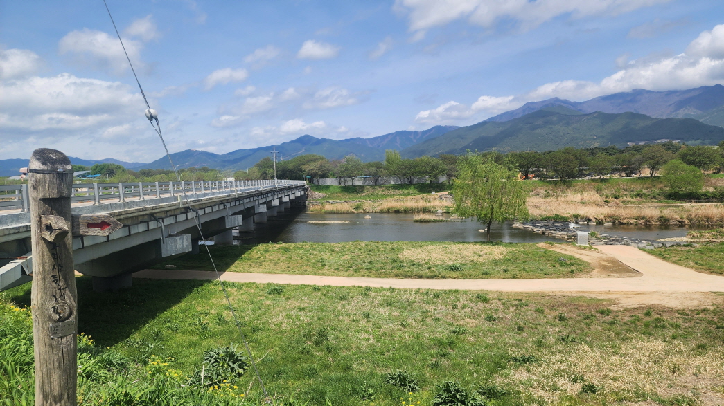 - 면사무소 앞에서 다리를 건너 도로를 따라 조금 걷다가, 왼쪽 다리를 한 번 더 건너면 서시천 둑방길이 다시 나타난다.