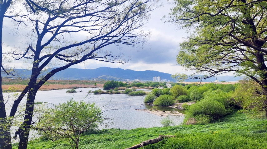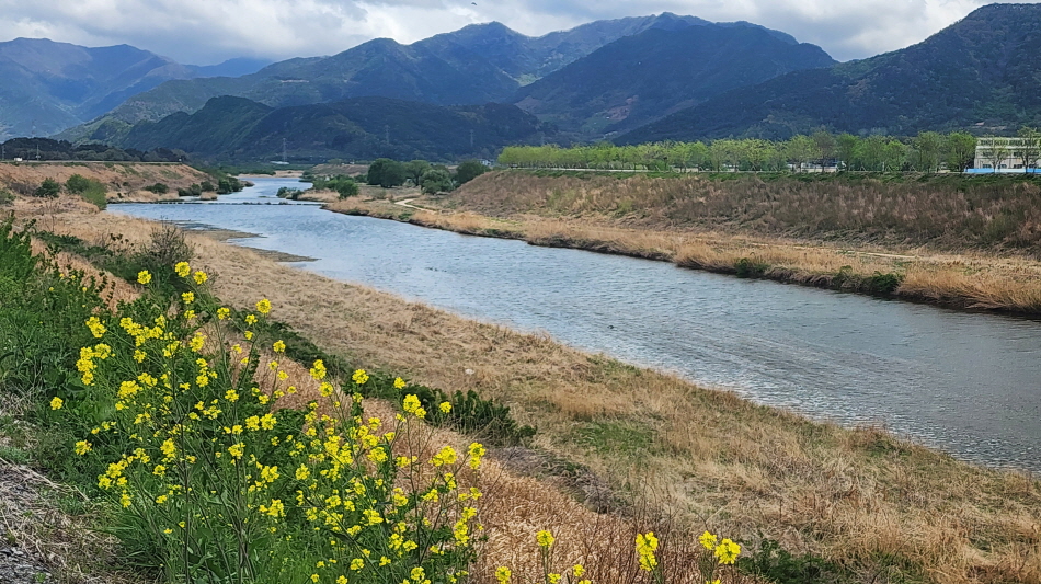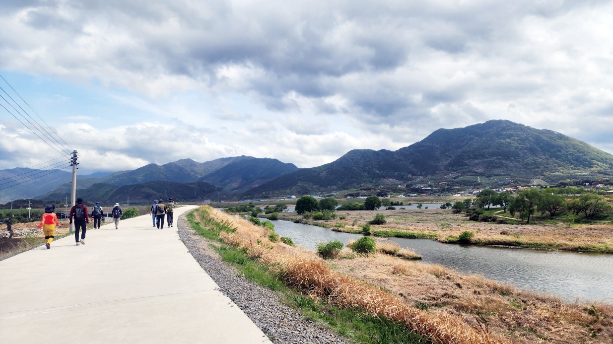 - 서시교 아래를 지나, 다시 올라와 서시교를 건너, 반대편 섬진강 둑방길을 따라 걷는다.