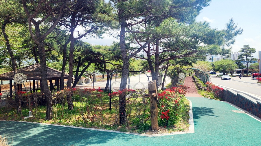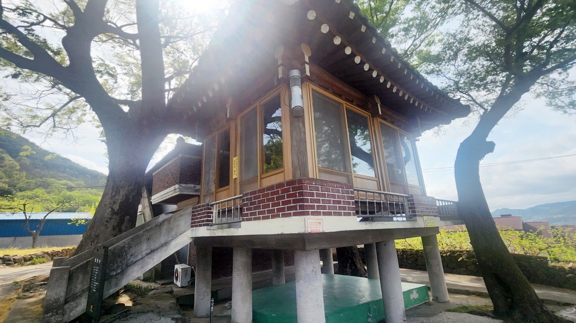- 광희면 사무소 앞 쉼터에서 휴식을 취한다.
