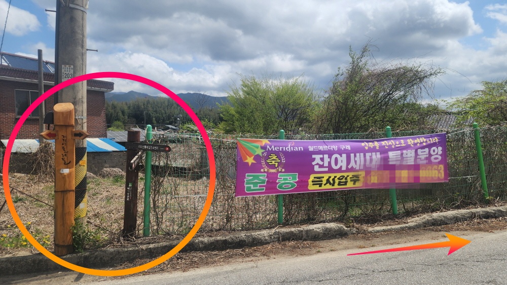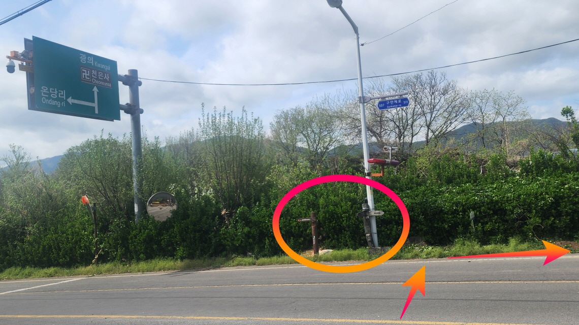 - 난동마을을 지나 도로를 따라 걷는다. 난동, 온동 마을을 지난다.