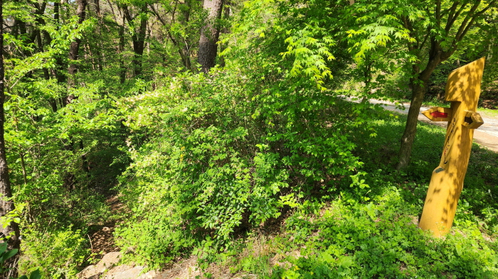 - 고개에서 내려와 임로를 따라 걷다가, 정자옆으로 서있는 벅수 표식을 따라 산길로 내려서야 한다.