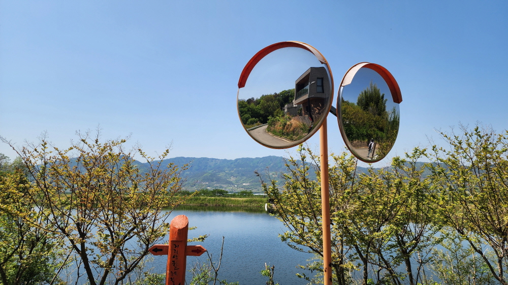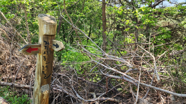 - 왼쪽 사진은 숲길로 다시 들어서며 뒤돌아 보고 찍은 사진. 농로에서 왼편 숲길로 들어서서.