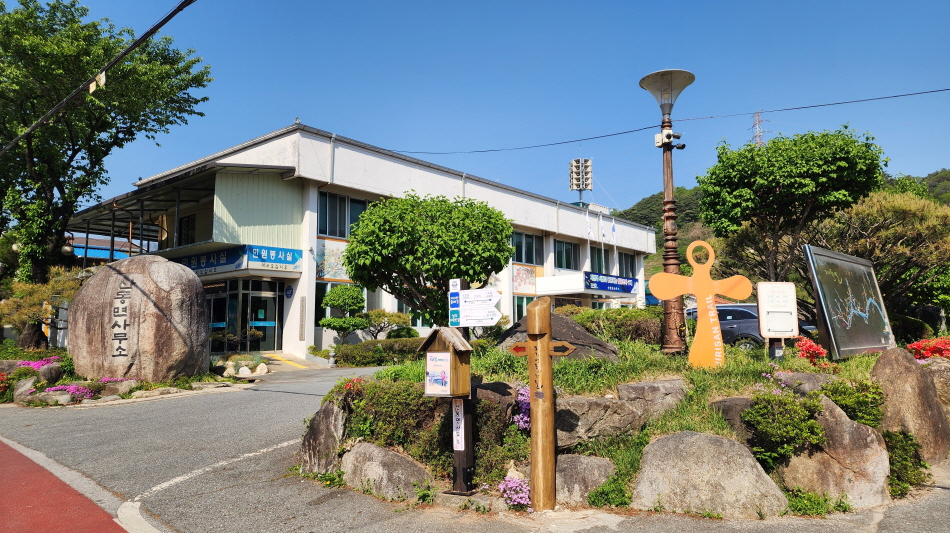 - 산동면 사무소에서 오늘의 걷기 일정을 마친다.