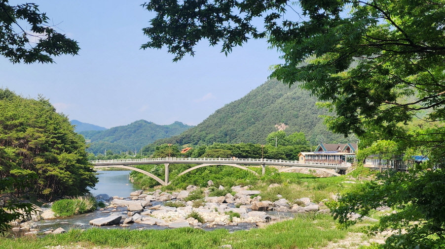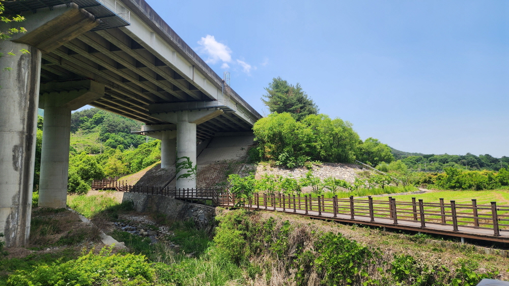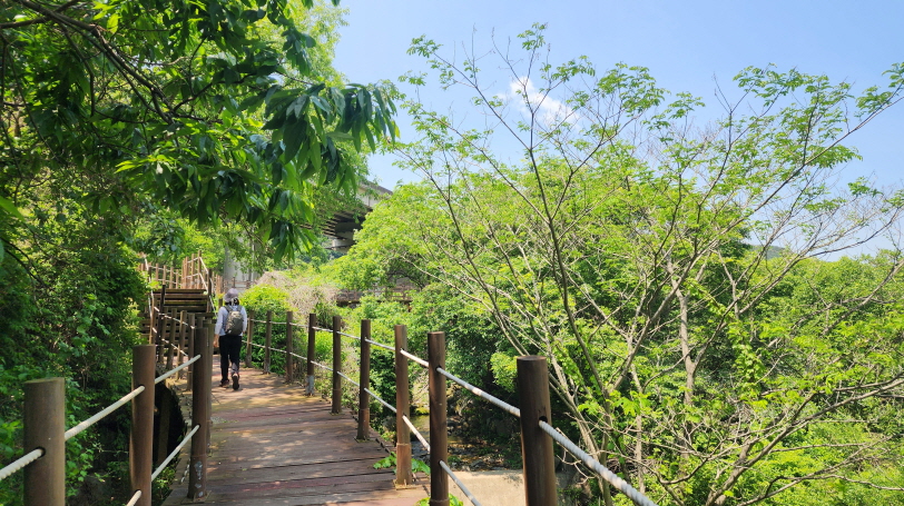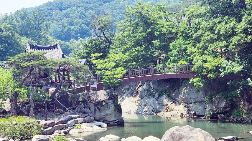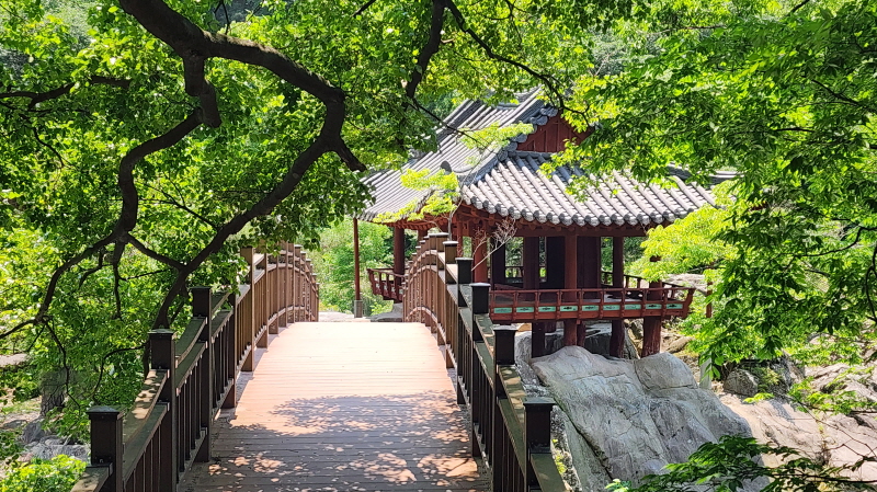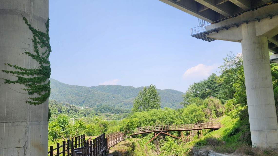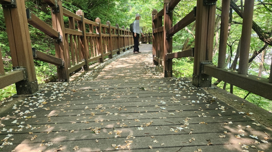 - 람천정에 바라본 계곡의 다리. 람천정 정자에서 잠시 휴식을 취하고, 계곡을 바라보고, 다시 출발해 데크길을 따라 걷는다.