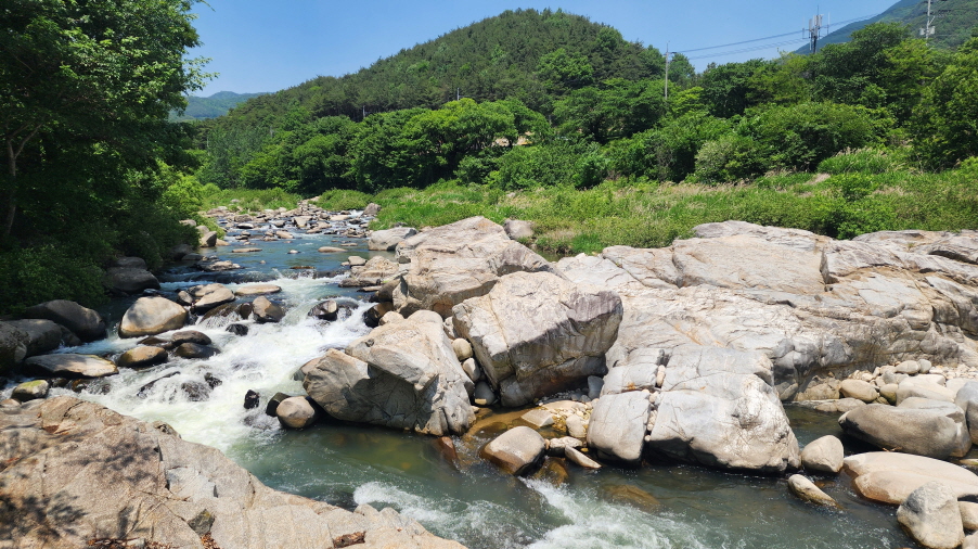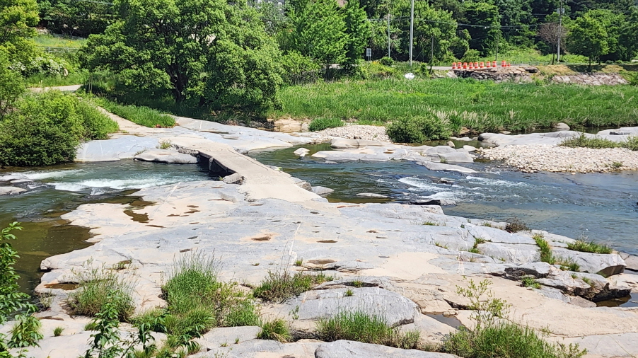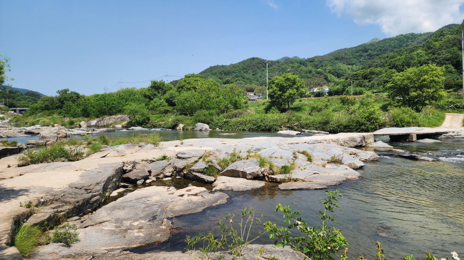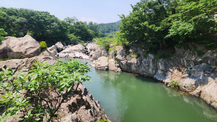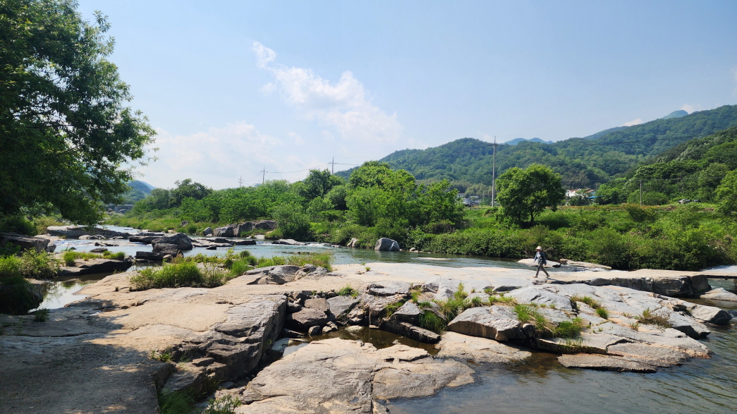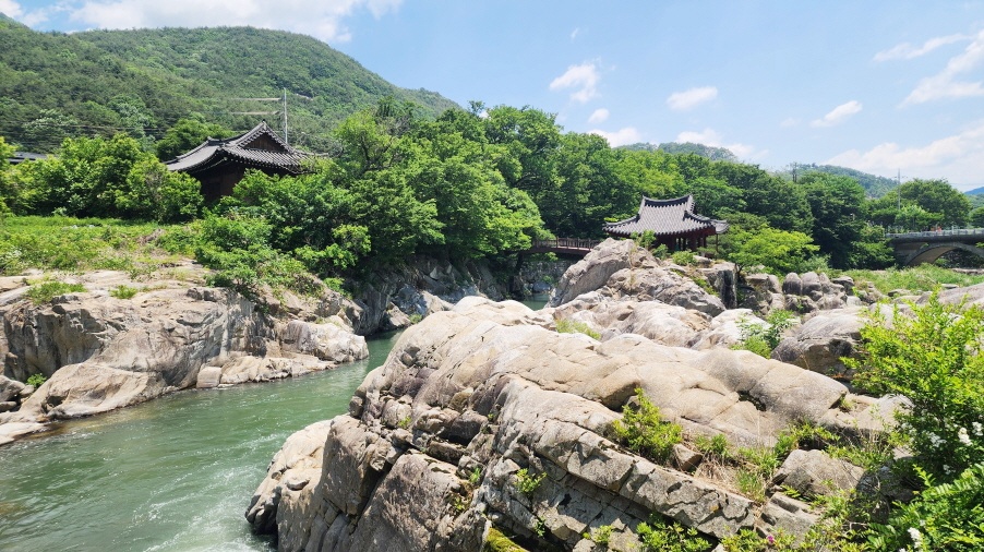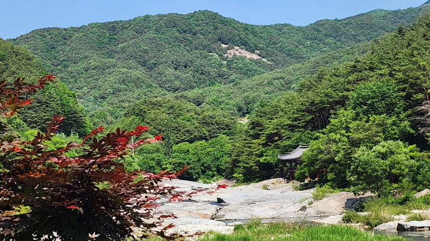 - 능월정을 바라보며 계곡을 따라 걷는 길은 정말 예쁘다. 계곡의 너럭바위들이 하얗게 펼쳐져 있는 모습이 여름에 발담그고 휴식을 취하기 좋은 장소이다.