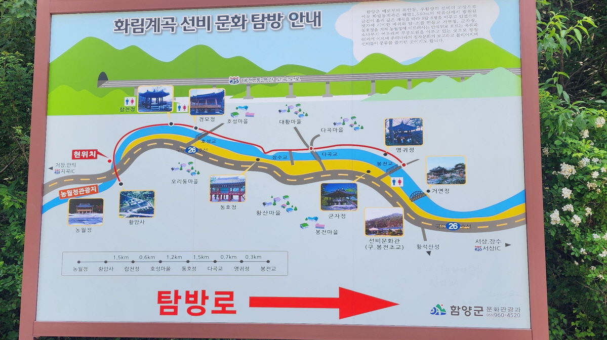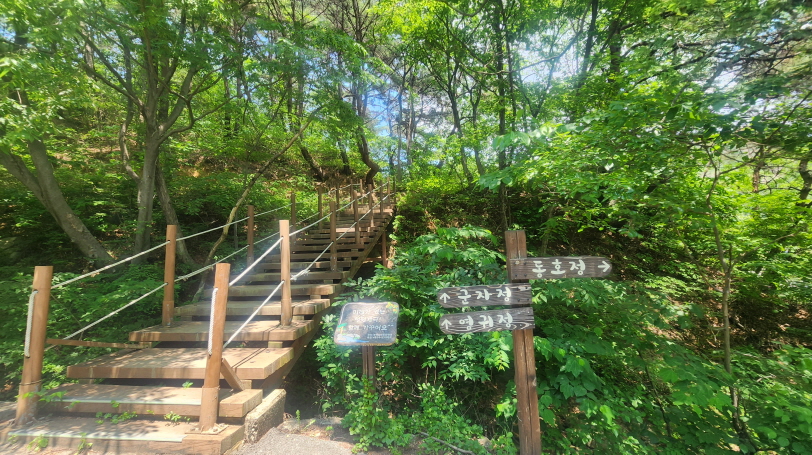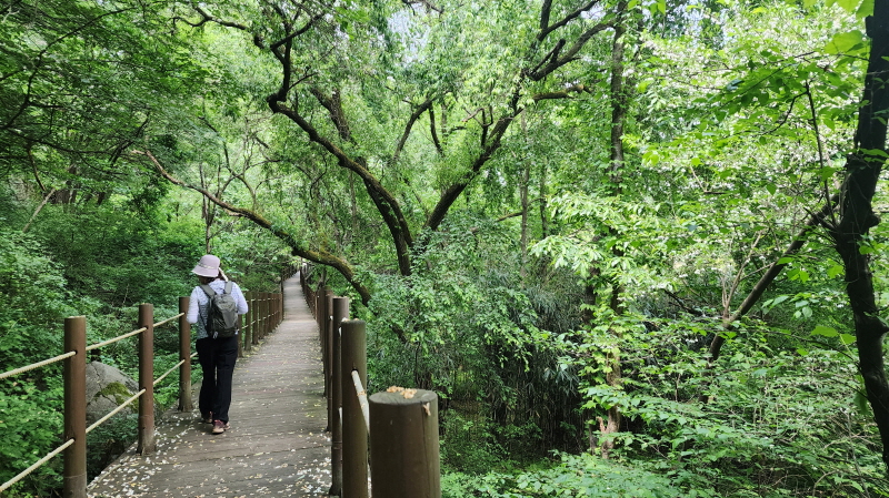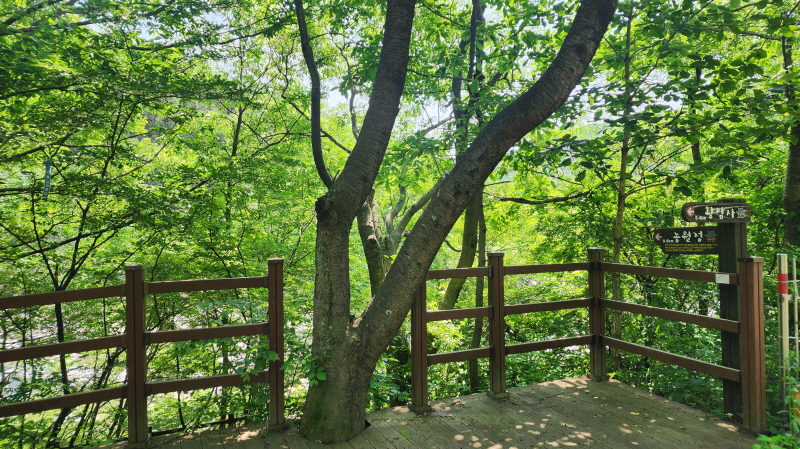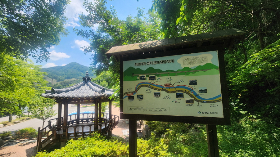 - 농월정 주차장에 차를 세우고, 화림계곡을 따라 걷는 선비길 걷기를 시작한다. 거의 전 구간이 데크길로 숲길이다.