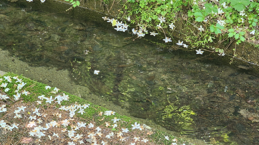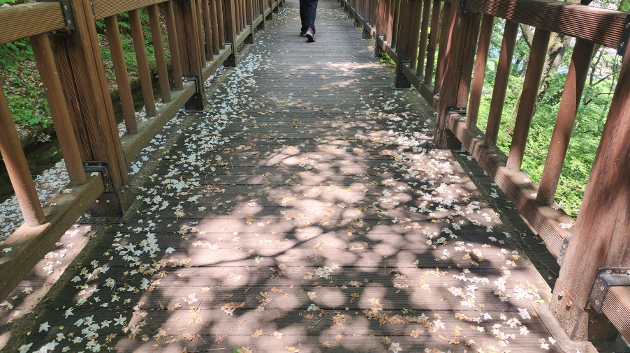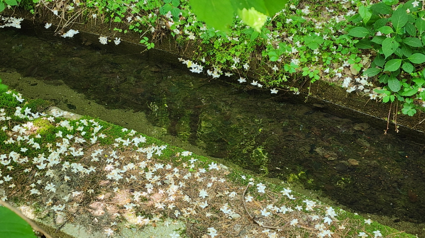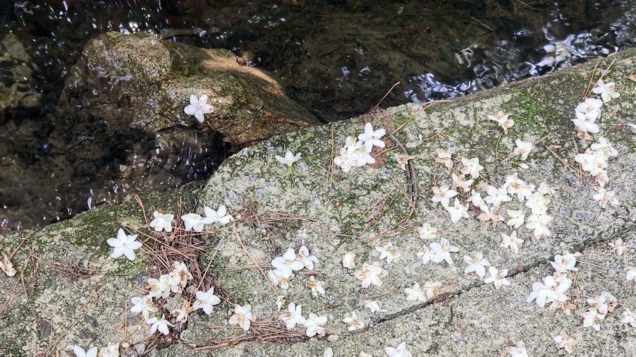 -때죽나무 하얀꽃이 떨어져 꽃길을 만들었다.