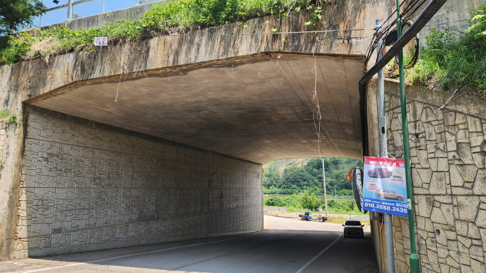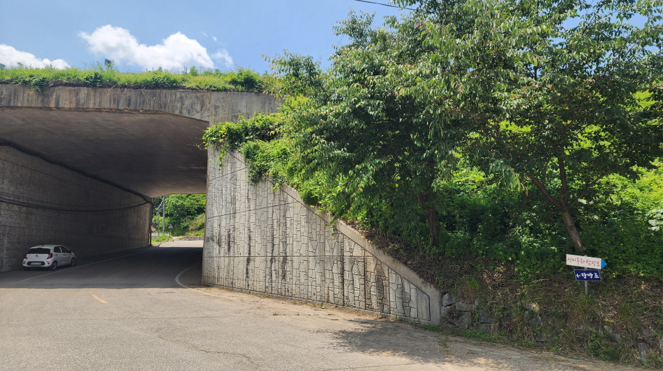 - 데크길을 벗어나면서 다시 농로, 시멘트 햇볕길. 도로밑 굴다리도 지나고,