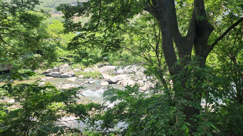 - 계곡을 바라보며 점심을 먹고, 커피를 마시고, 휴식을 취한다. 바람이 산들산들 불어 시원하다.