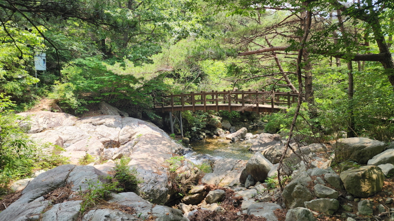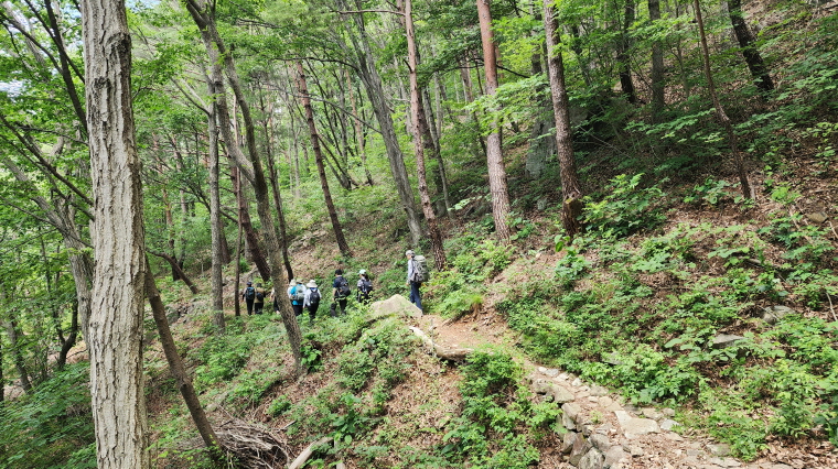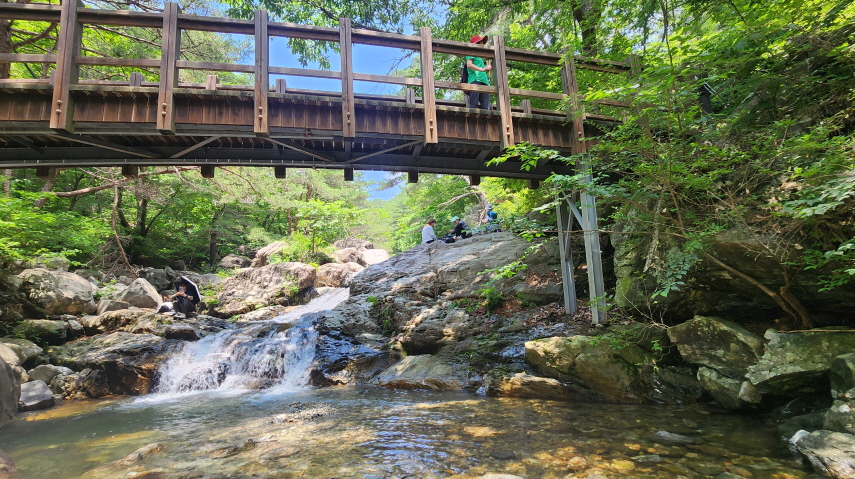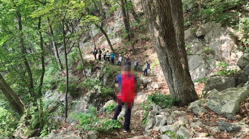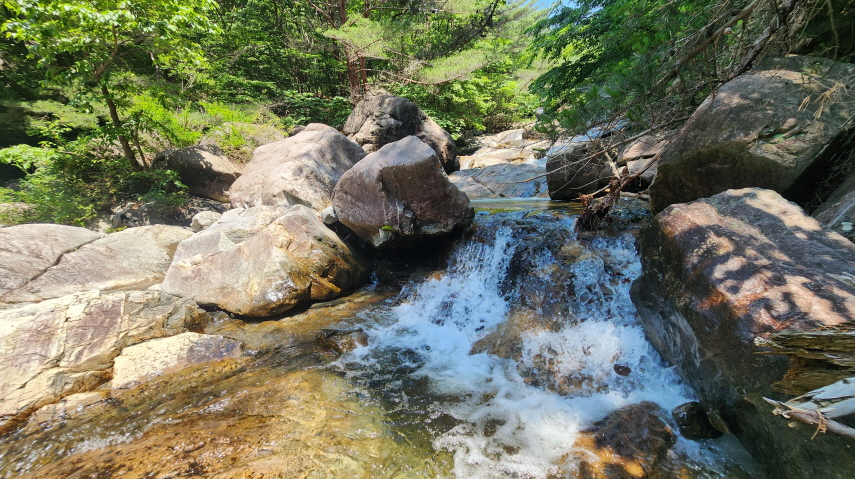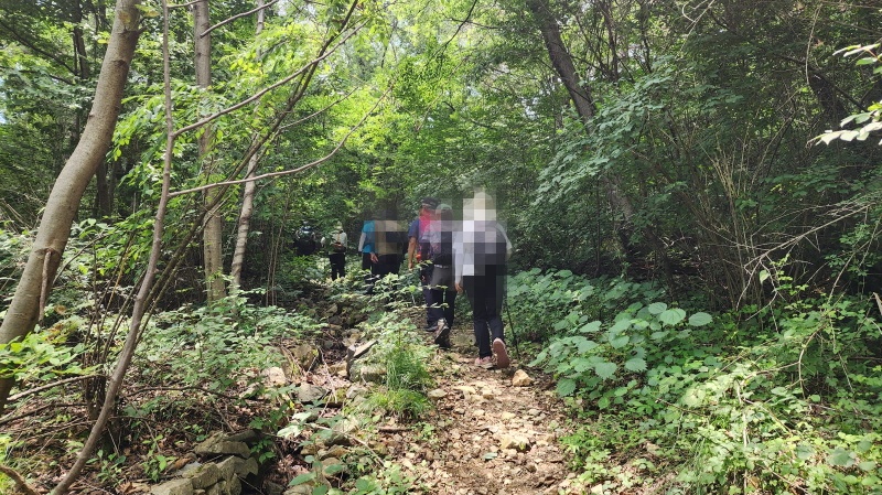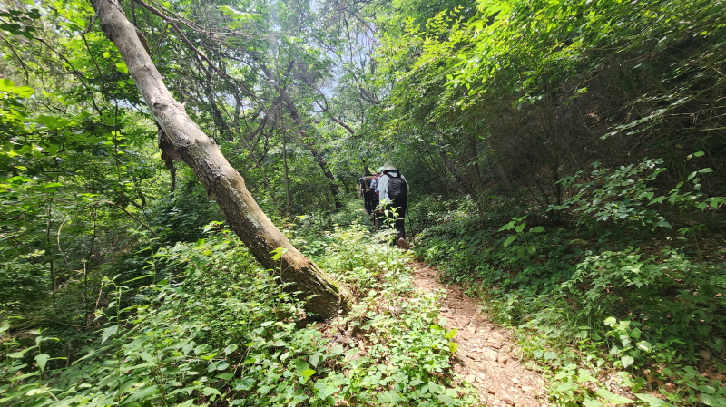 - 계곡에서 1시간 이상 쉬었다. 피로가 풀린 후 다시 출발한다.