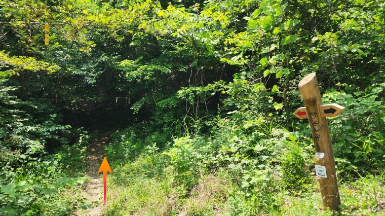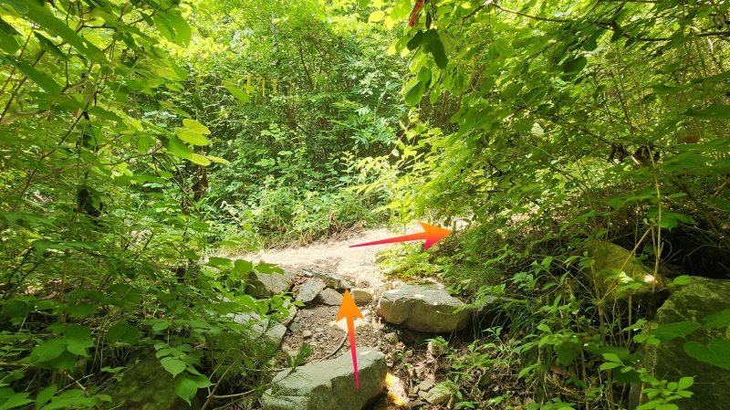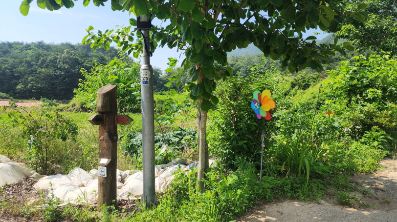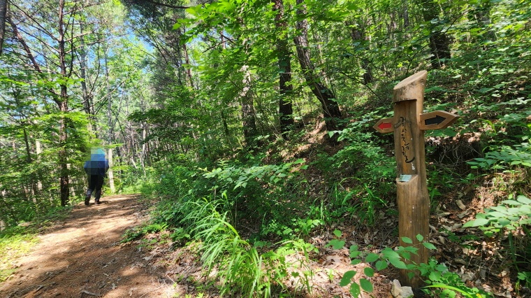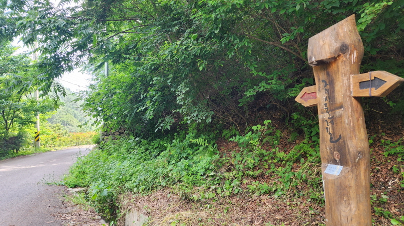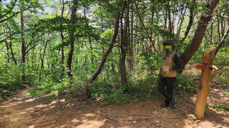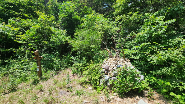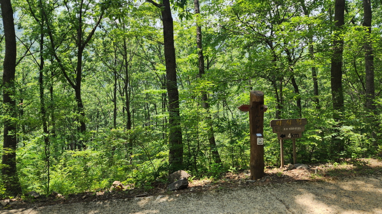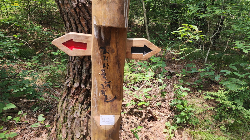 - 계곡에서 올라와 어디로 가야 하는지 잠시 방향 감각을 잃었다. 계곡에서 오르면서 왼쪽으로 꺾어지면 돌탑과 이정표가 나온다.