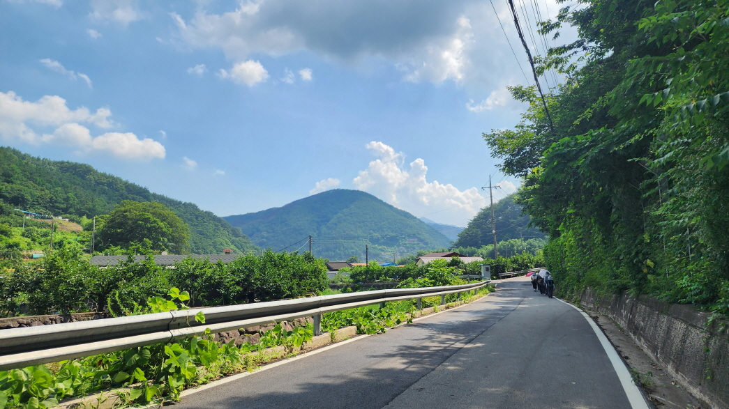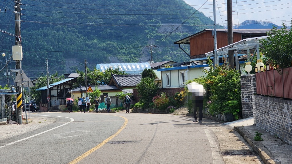 - 마을이 보인다. 종점이 가까워보이는데, 너무 더우니 우산이라도 써야하나 계속 망설인다.