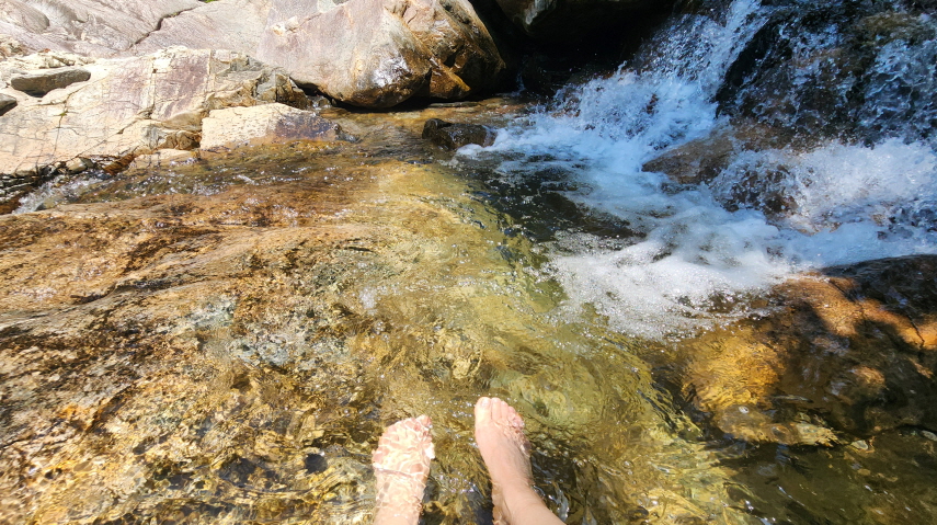 - 다시 계곡 다리 아래쪽으로 내려와 다시 발을 담그고, 멍 때리기를 한다.