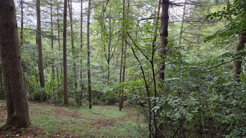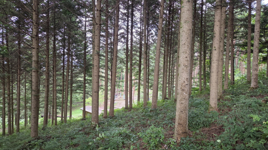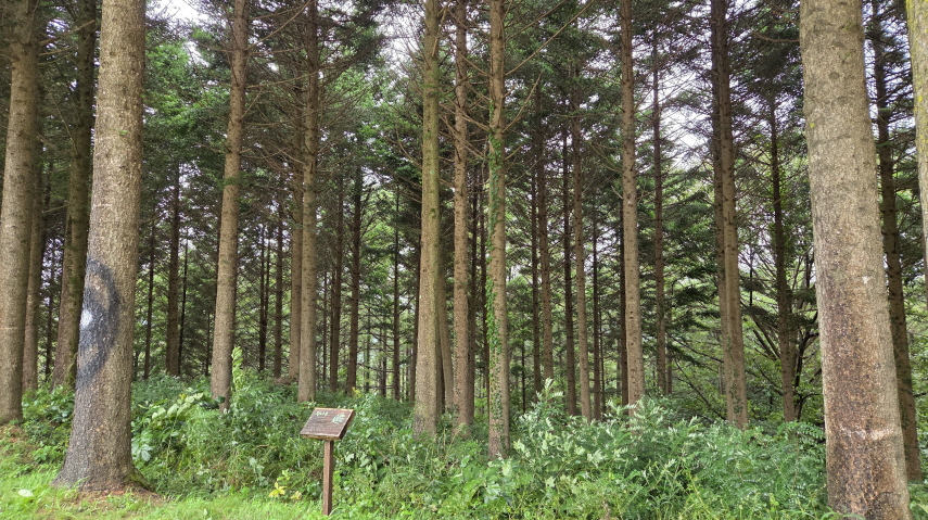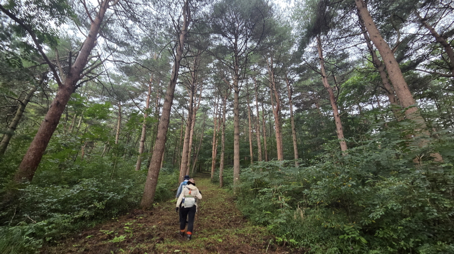 - 편백나무 숲 따라 급한 경사로로 산으로 오르기, 그리고 아무도 찾지 않은 자연숲과 인공숲 비교하기 체험.