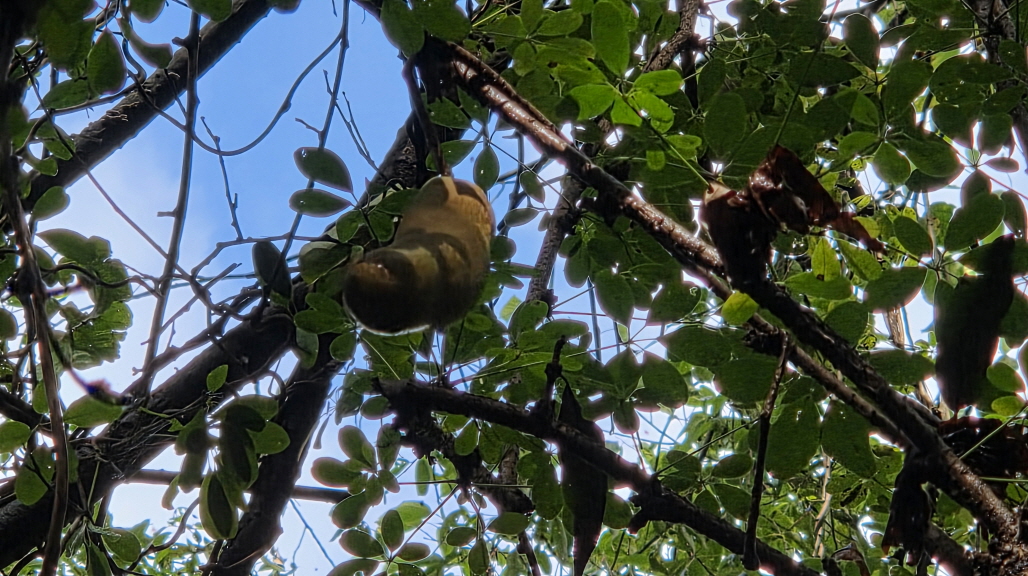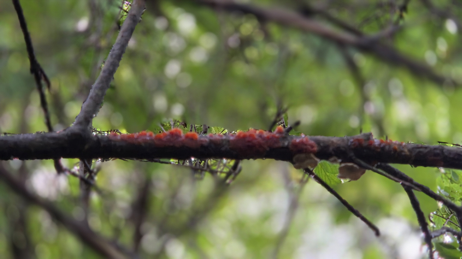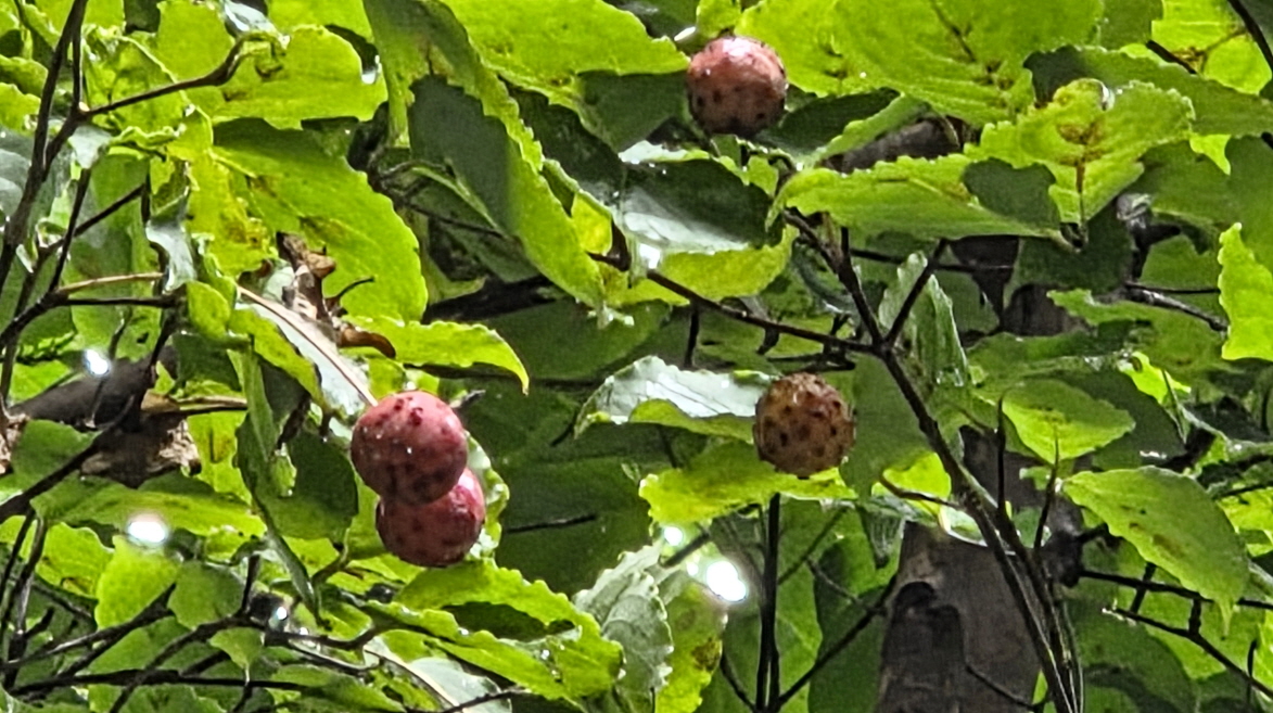 - 떨어진 산딸나무 열매를 주워, 껍질을 까서 속을 먹어보니, 키위맛이 난다. 달고 맛있다. 등위에 하트모양을 달고 있는 너는 누구?