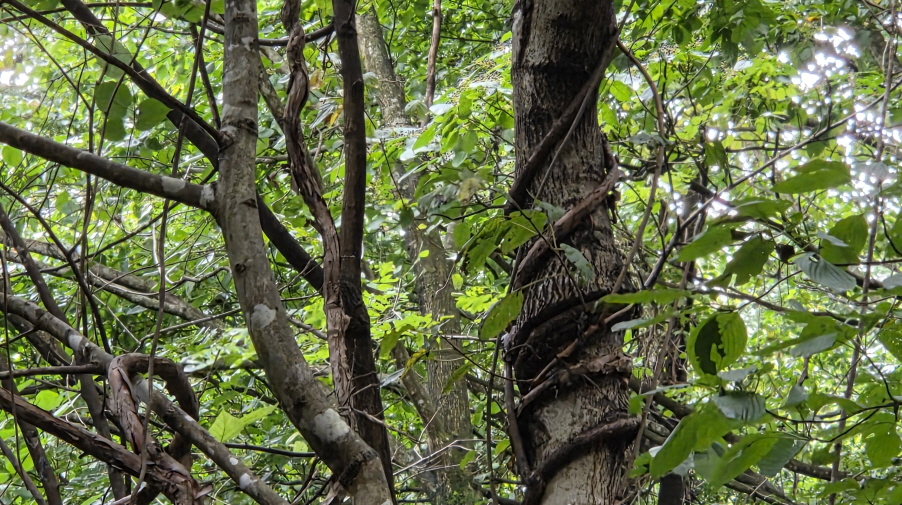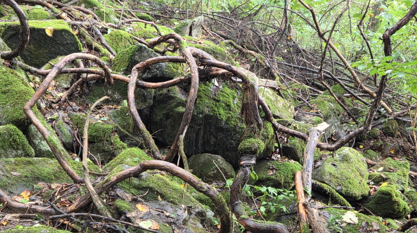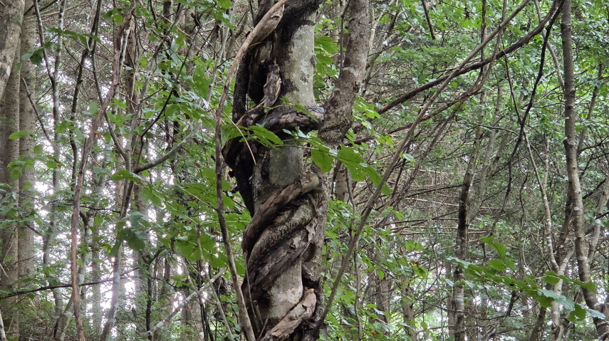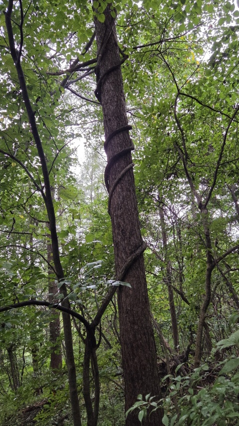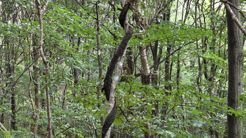 - 숲에 서식하는 다양한 덩쿨식물, 칡, 머루, 다래 등등 (통나무 다리 건너기- 비가 내려 나무가 미끄려워 아슬아슬, 흔들흔들~~)