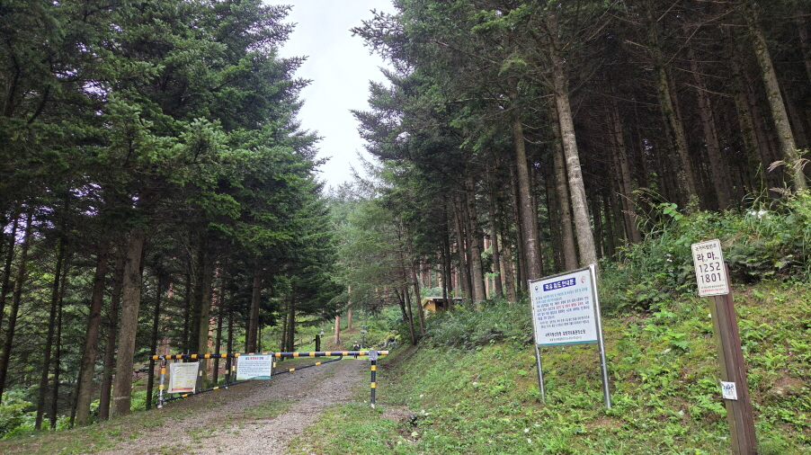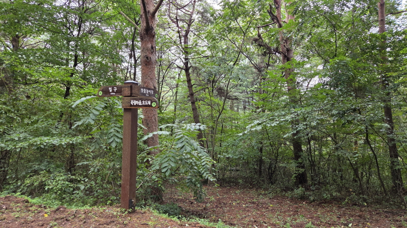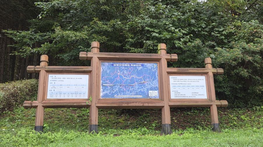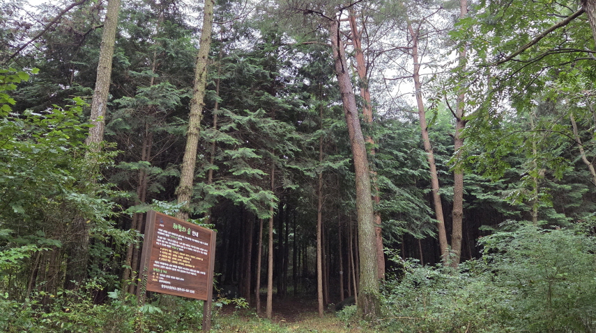 (1) 심봉산 등산로 입구 (2) 유아숲체험장 입구