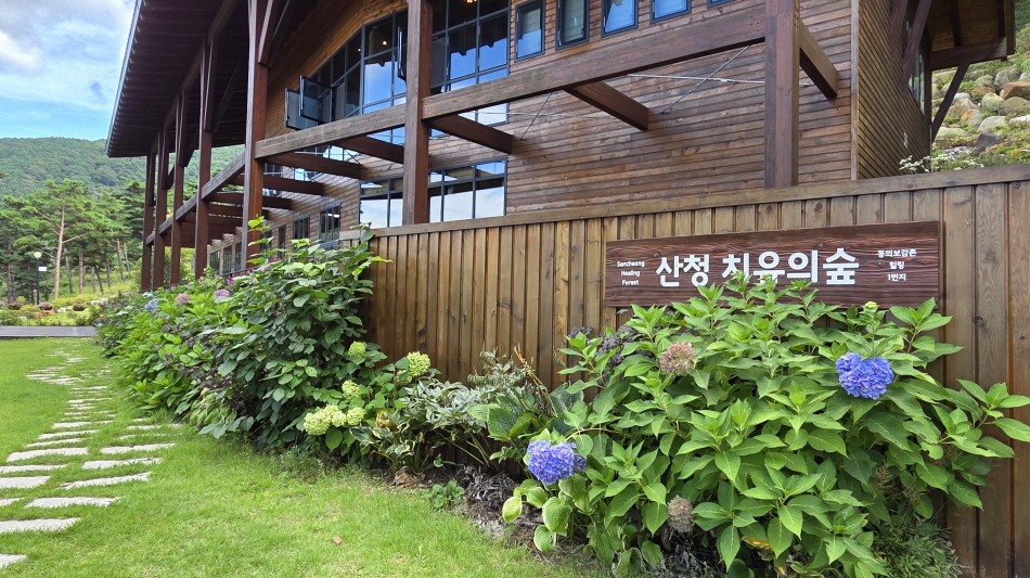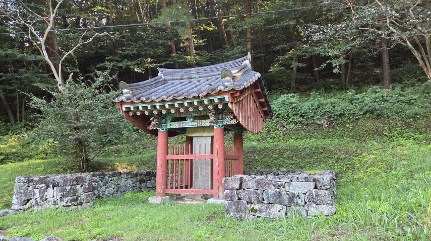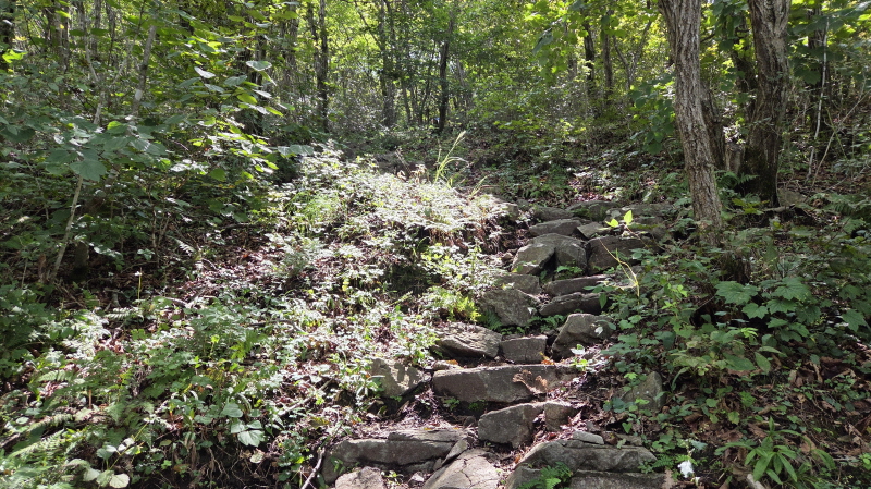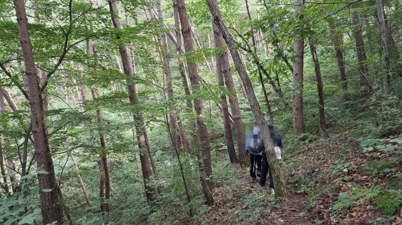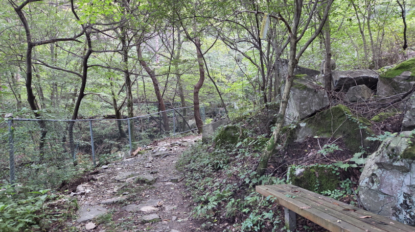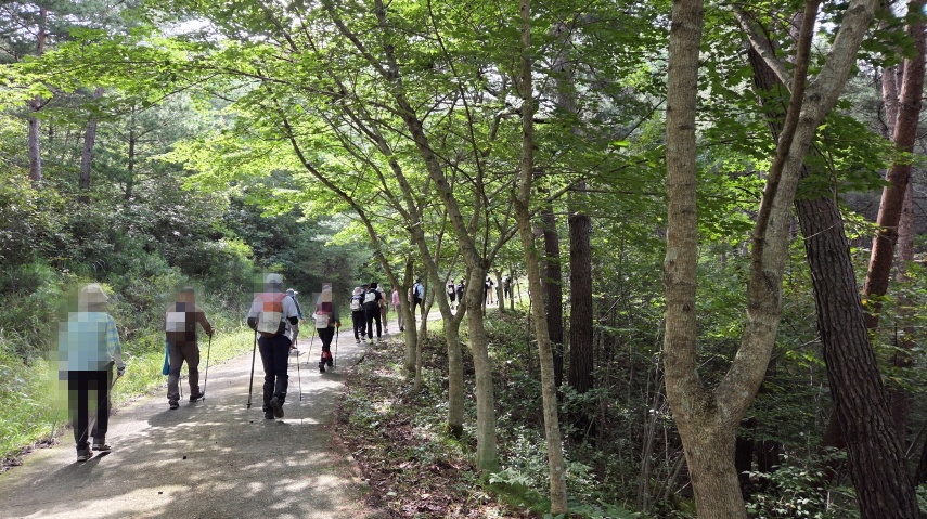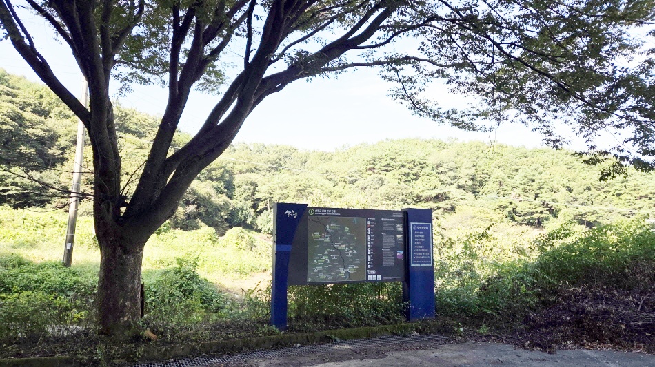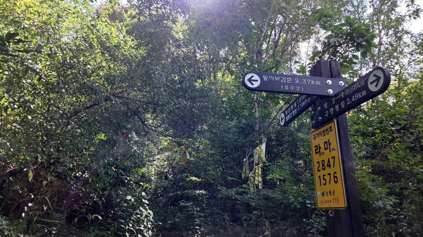 - 산길을 오르면, 중간에 '동의보감 둘레길'인 임로와 만난다.