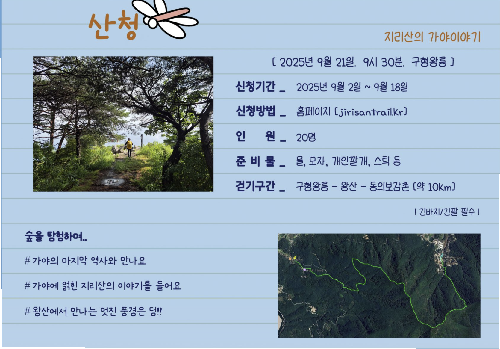 - 오늘의 주제는 '지리산에 얽힌 가야 이야기'로 비운의 남가야의 마지막왕에 관한 이야기를 따라서 지리산 자락의 왕산에 다녀오는 코스이다.