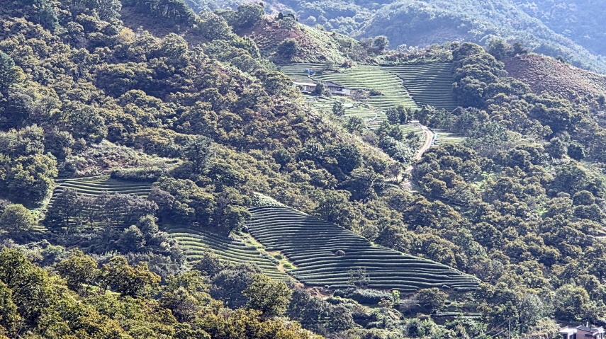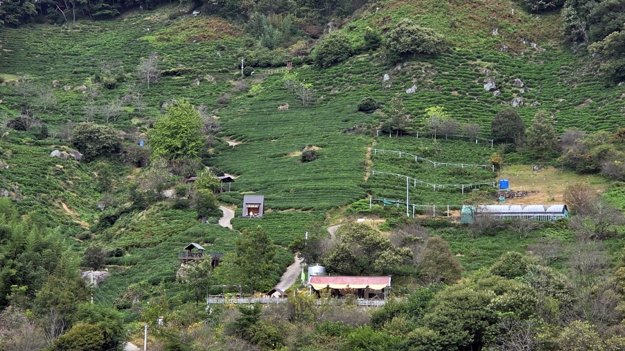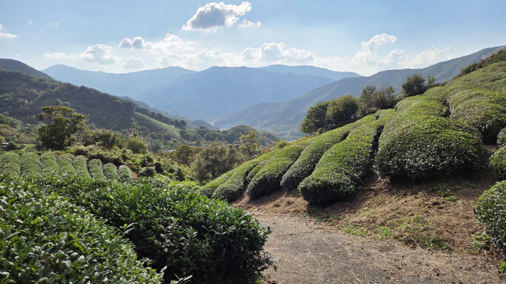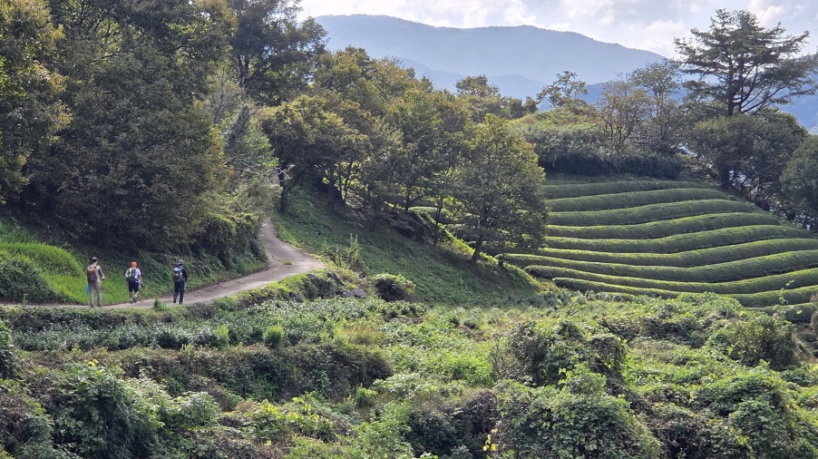- 차밭을 내려다보며 휴식을 취하고, 다시 출발한다.