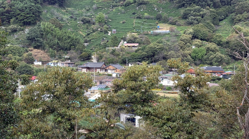 - 마을길을 따라 내려간다. 이제 포장도로를 따라 마을들을 지나 정금차밭으로 간다.