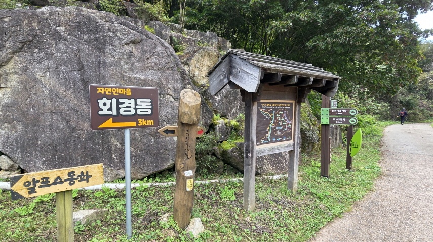 - 마을로 내려가면 끝까지 포장도로이다.