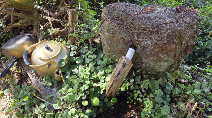 - 철망쳐진 700m를 내려와 조금 더 하산하면 바로 '하늘호수 차밭'이 나온다.