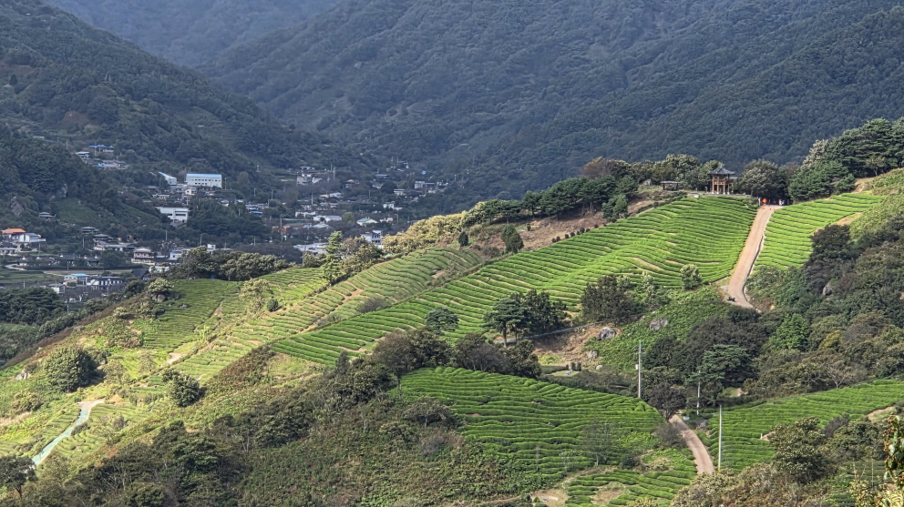 - 정금차밭은 오늘 코스의 하이라이트이다. 밑에서 올려다 본 풍경이 더 아름답다.