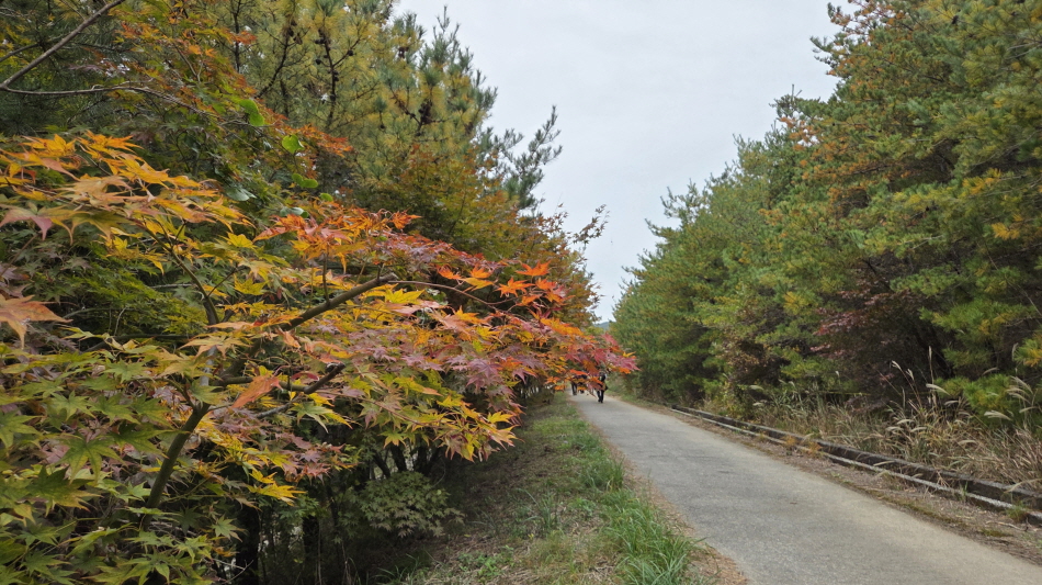 - 송정 오미구간은 숲길이 4km 정도 되고, 나머지 6.5km정도는 아스팔트가 깔린 농로이거나 마을길이다.