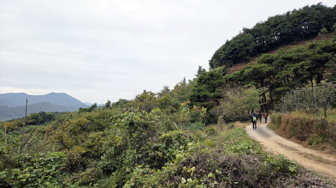 - 우리는 송정에서 오미마을로 내려가는 것이지만, 산 중턱에서 고개를 넘어가야 해서 700m정도는 다소 급경사를 올라가야 한다.