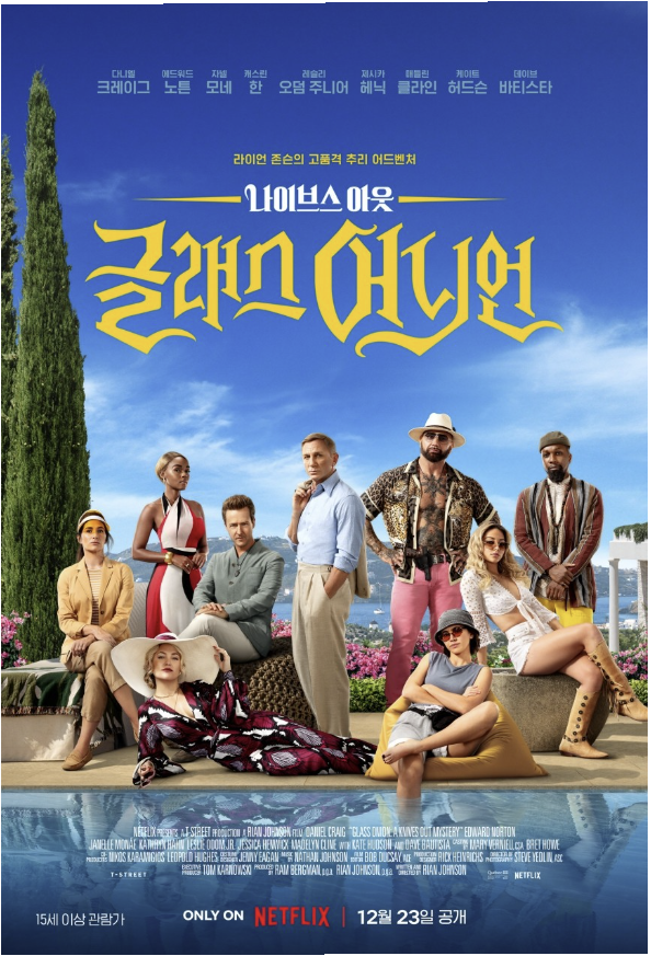 아카데미상 후보에 오른 라이언 존슨 감독이 전편에 이어 또다시 각본과 연출을 맡은 《나이브스 아웃: 글래스 어니언》은 <나이브스 아웃 시리즈2>에 해당한다.