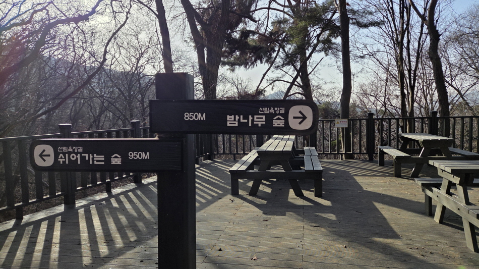 - 코스의 중간마다. 이렇게 쉼터들이 곳곳에 있다. 천천히 걷다가 쉼터에서 쉬면서 간식이나 점심등을 먹으며 산림욕을 즐기면 힐링이 된다.