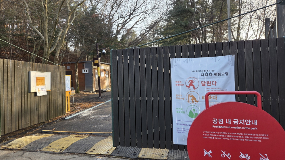 언젠가 부터는 동물원 안쪽 울타리문을 잠가버리고, 따로 산림욕장 길이라고 붙여서 뒷길 도로를 따라 들어가도록 만들어 놓았다.