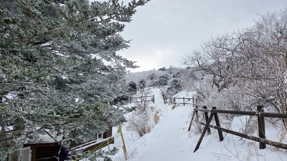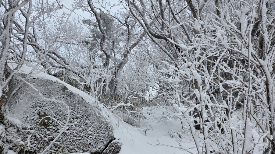 - 대피소 가는 길의 상고대. 하얀 눈꽃