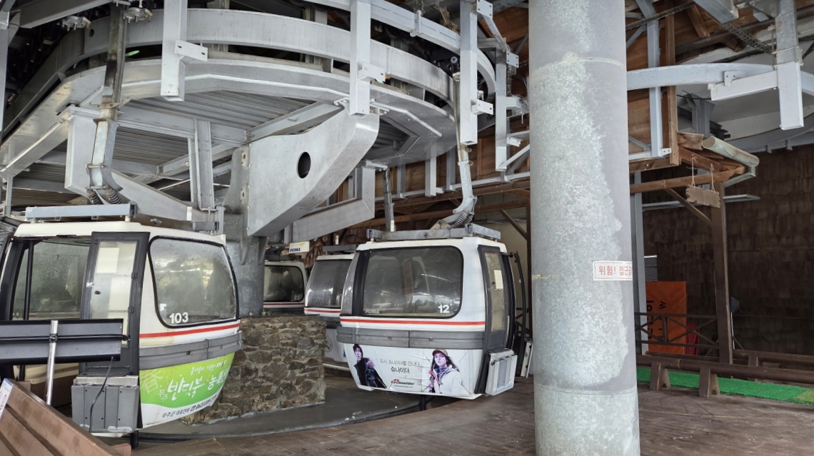- 설천봉으로 다시 내려와 곤도라를 탄다. 주말에는 하행 곤도라를 타려면 사람들이 많아 순번 대기표를 매표소애서 뽑아야 하는데, 주중이라 사람이 그다지 많지 않아, 짧은 줄을 서서 기다림 없이 곤도라에 탑승했다.