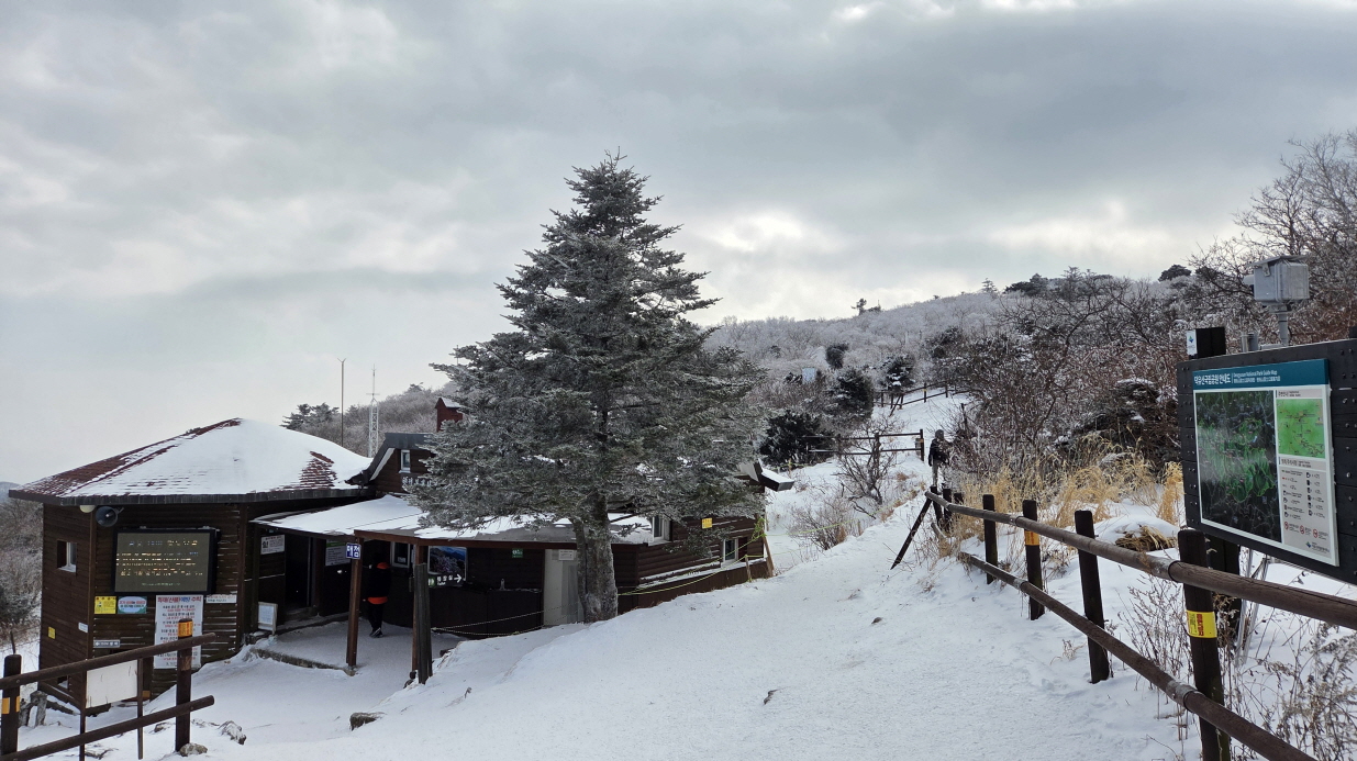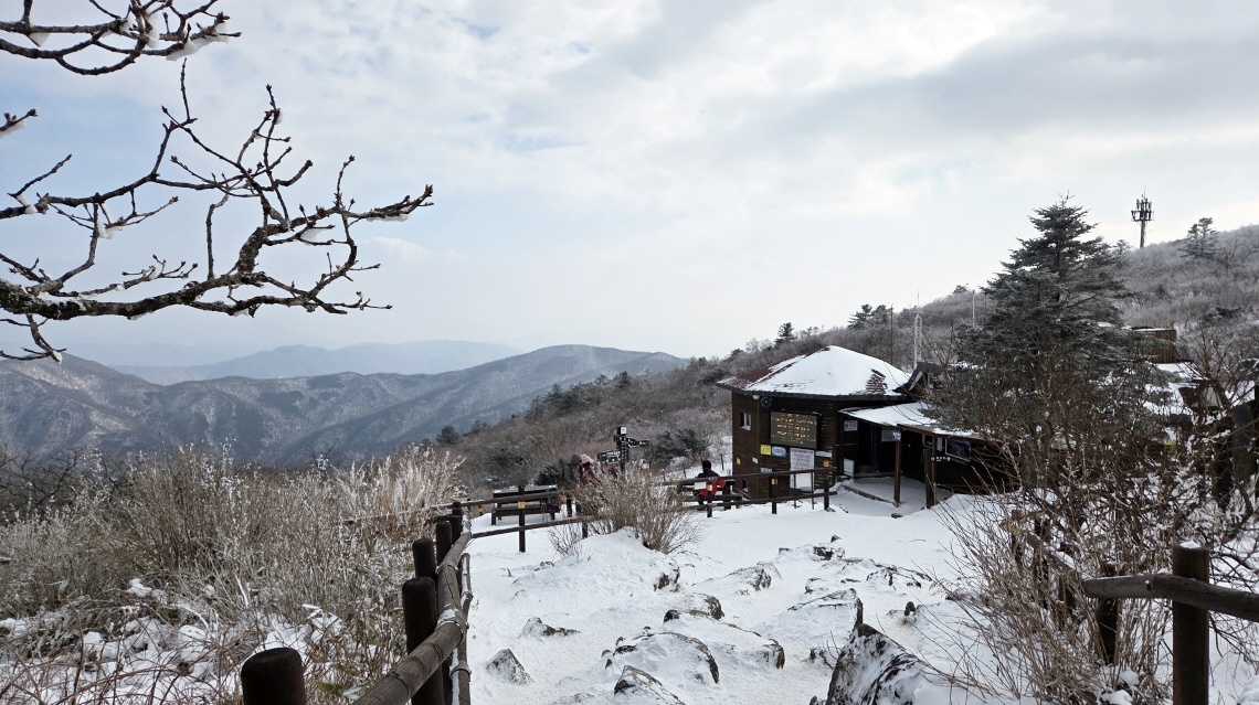 - 향적봉 대피소에서 간단한 간식과 커피를 먹으러 내려간다.